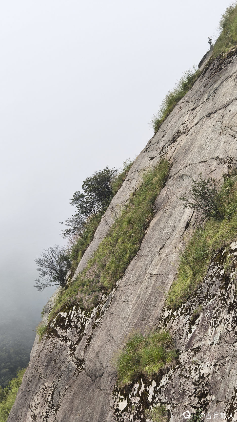 野径虽然荒芜陡峭,也阻止不了驴友攀爬登顶的韧劲,偶遇地势稍平缓些,即无法抑制拍摄留念的意愿