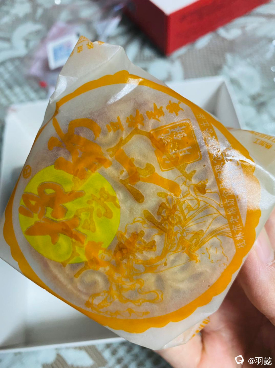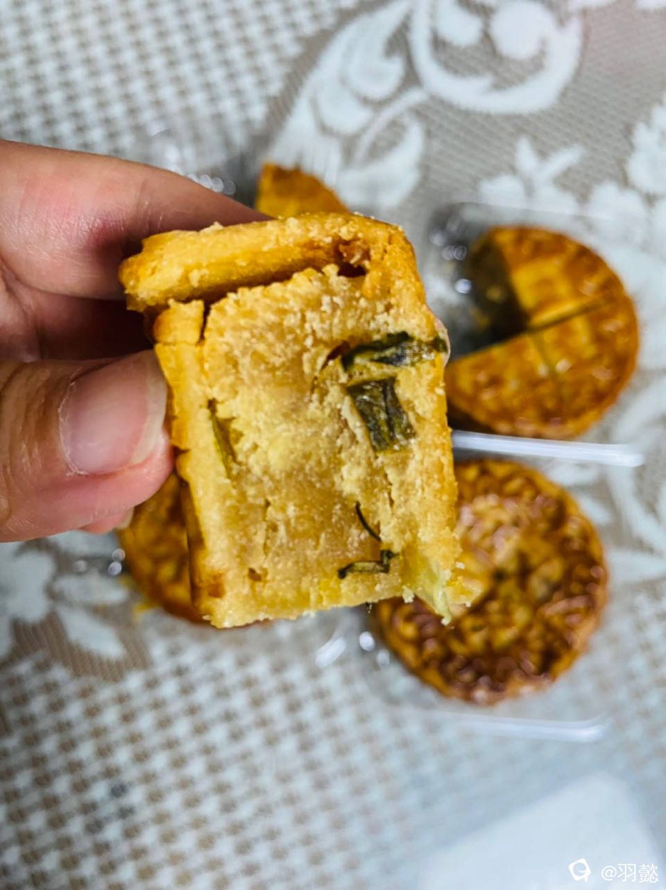 打开油纸!一股浓郁的葱油香钻入鼻腔,味道独特!皮薄而柔软!入口豆蓉在唇齿间化开,顺口而松软!