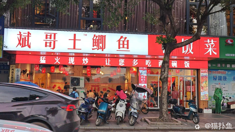 最早在桂林看到的是“廖哥土鲫鱼”,现在到处都是姐啊 叔啊 妈啊 婶啊土鲫鱼 装修风格和广告 吃饭口号 价格都差不多,各种美味小炒…反正说实话那个价格真心不舍得吃(吃不起)