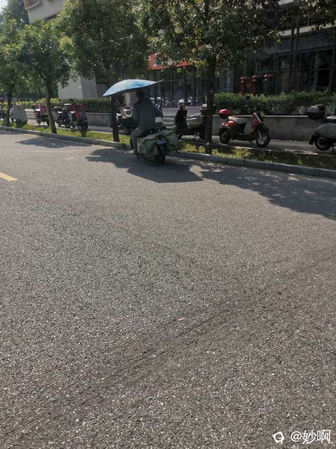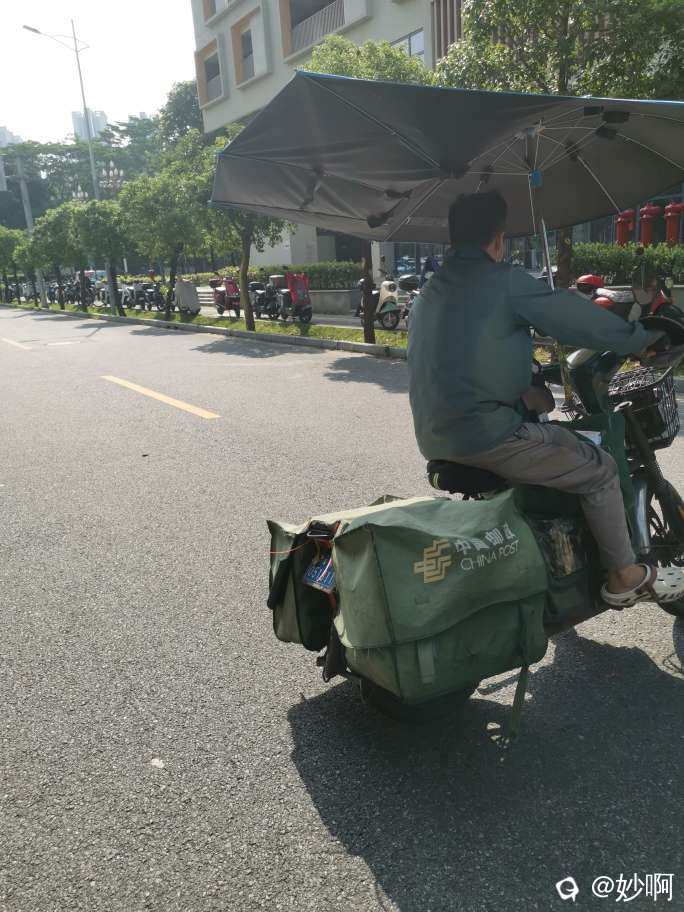 大哥礼貌客气,一看就是具有专业素养的人,尤其是临走时候极限压弯,精准地定位到靠近路边有树荫的区域。我竖起了大拇指,朝他说,好技术。没想到邮政大哥通过后视镜,用余光瞟了我一眼,说,如果他不会压弯,那么生活就要把他压弯,然后潇洒离去。