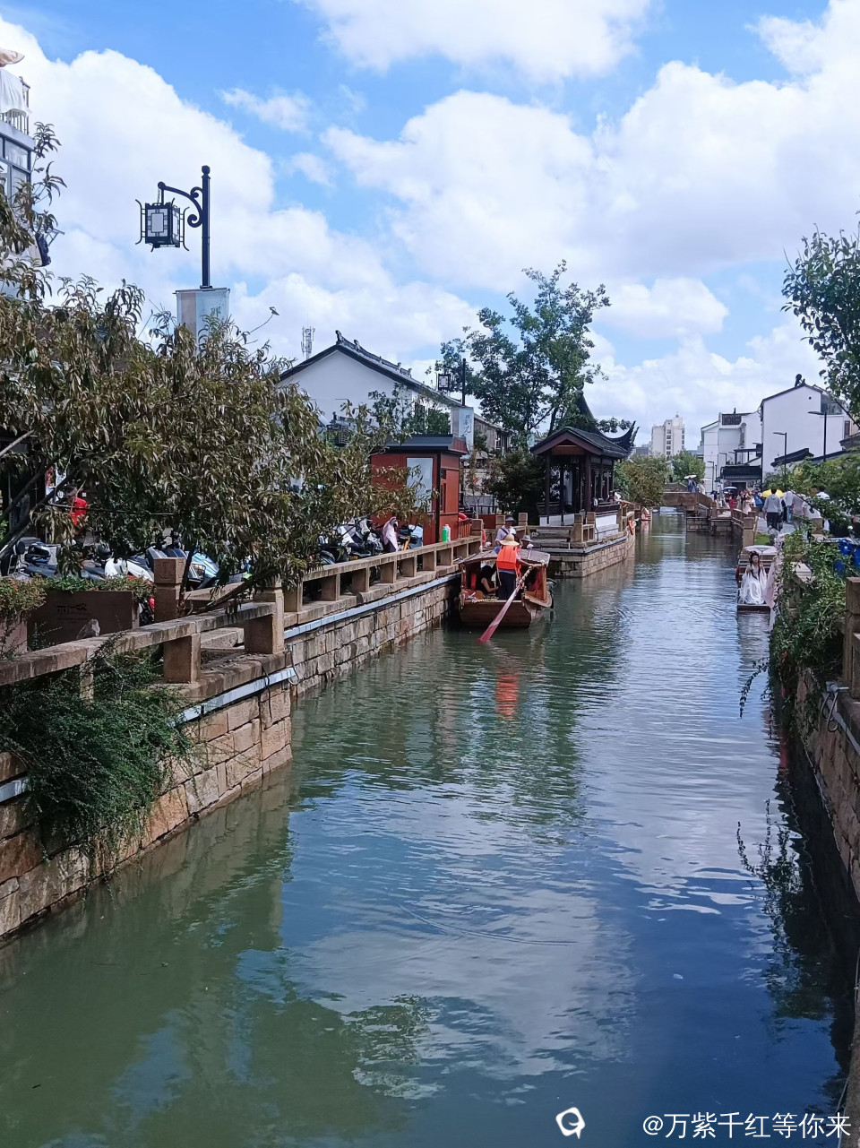 河渠中的乌蓬船,载着饶有兴致的游人,摇撸的大姐,合着江南小调,如沐春风的轻声吟唱,惹得路人,驻足倾听……