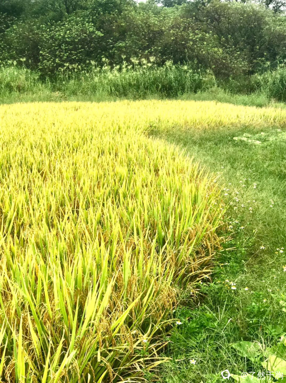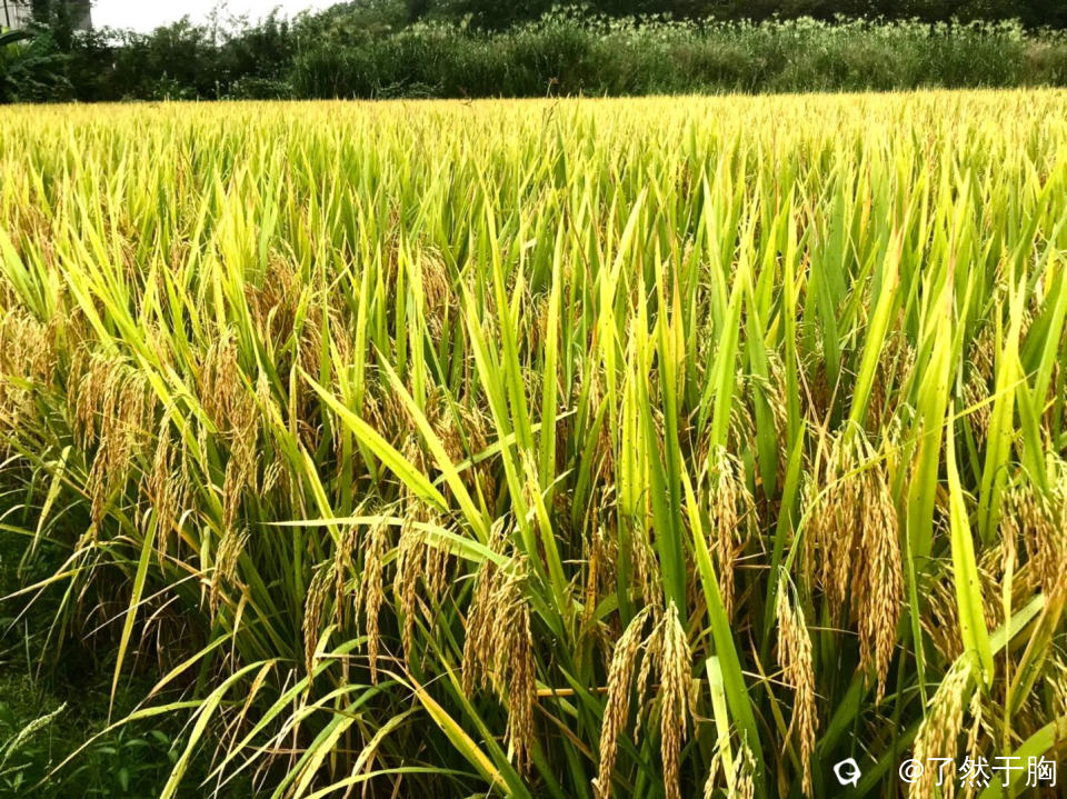 中秋节回老家与亲人团聚,走在田间小道上,但见金色的稻浪起伏,丰硕的稻穗低垂,一派丰收之象,真是让人赏心悦目啊。