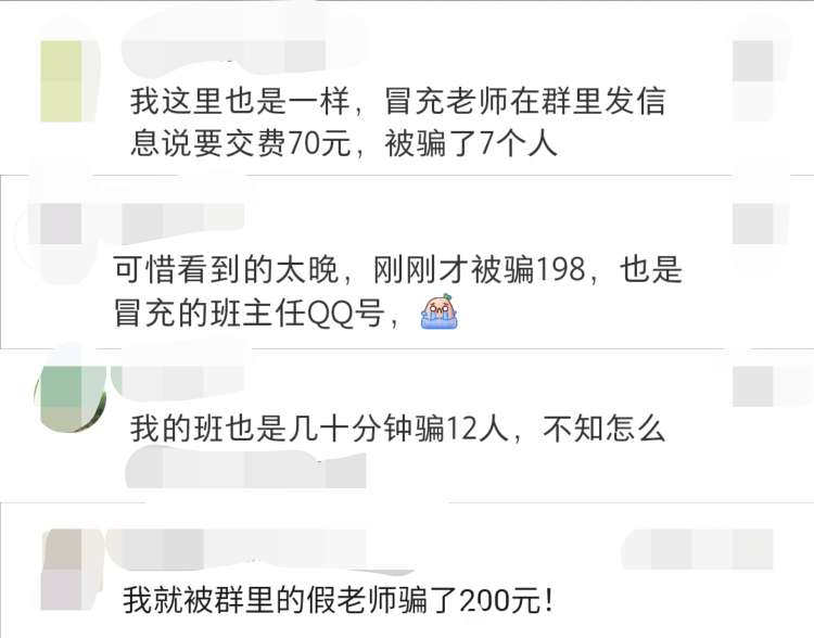 常见骗术一:想方设法混进班级群,假冒班主任或老师在班级群里发送各类缴费信息。