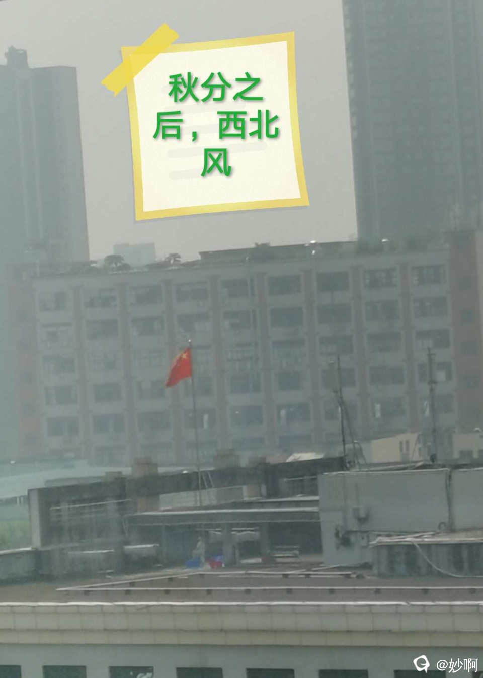 9月下旬,秋分刚过,红旗飘扬的方向也改变了,由原来的东南风,变成了现在的西北风。不得不佩服,古贤们对节气的精准设定。