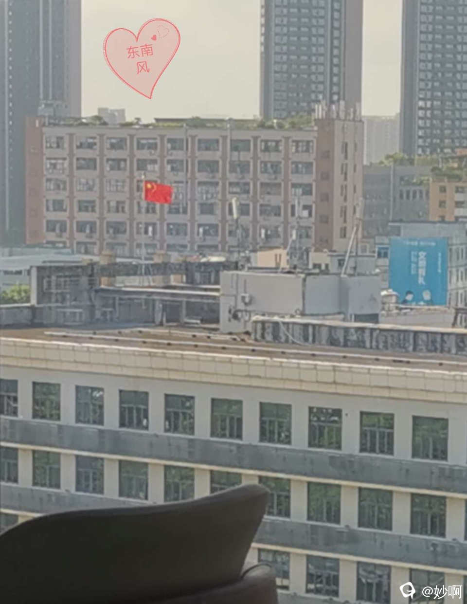 办公室在7楼,工位右侧有一面落地玻璃墙,透过玻璃可以看到对面街道办的办公楼顶有一面红旗。电脑看久了,眼睛干涩,就抬头看看那面国旗,她在风中飘扬。不管风雨飘摇还是烈日炎炎,只要风来,她便起舞,风止他静,端庄肃穆。她的存在给这破旧不堪的楼顶带来了气息,此时此景,我想吟诗一首,国破山河在,城春草木深,感时花溅泪,恨别鸟惊心,哈哈,有幸生活在红旗的下面,尽管它的下面仍然有一些肮脏之物,有些甚至见不得光,但早已没有往日的烽火狼烟。