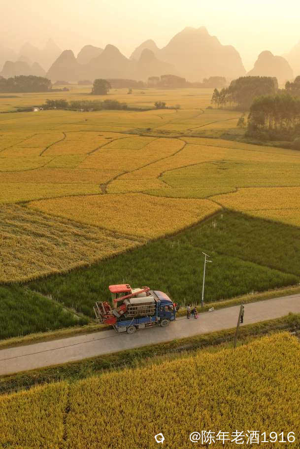 桂林老伍 发表于 2024-10-1 09:54 田里稻穗飘香,农夫忙收割。微笑在脸上闪烁~~