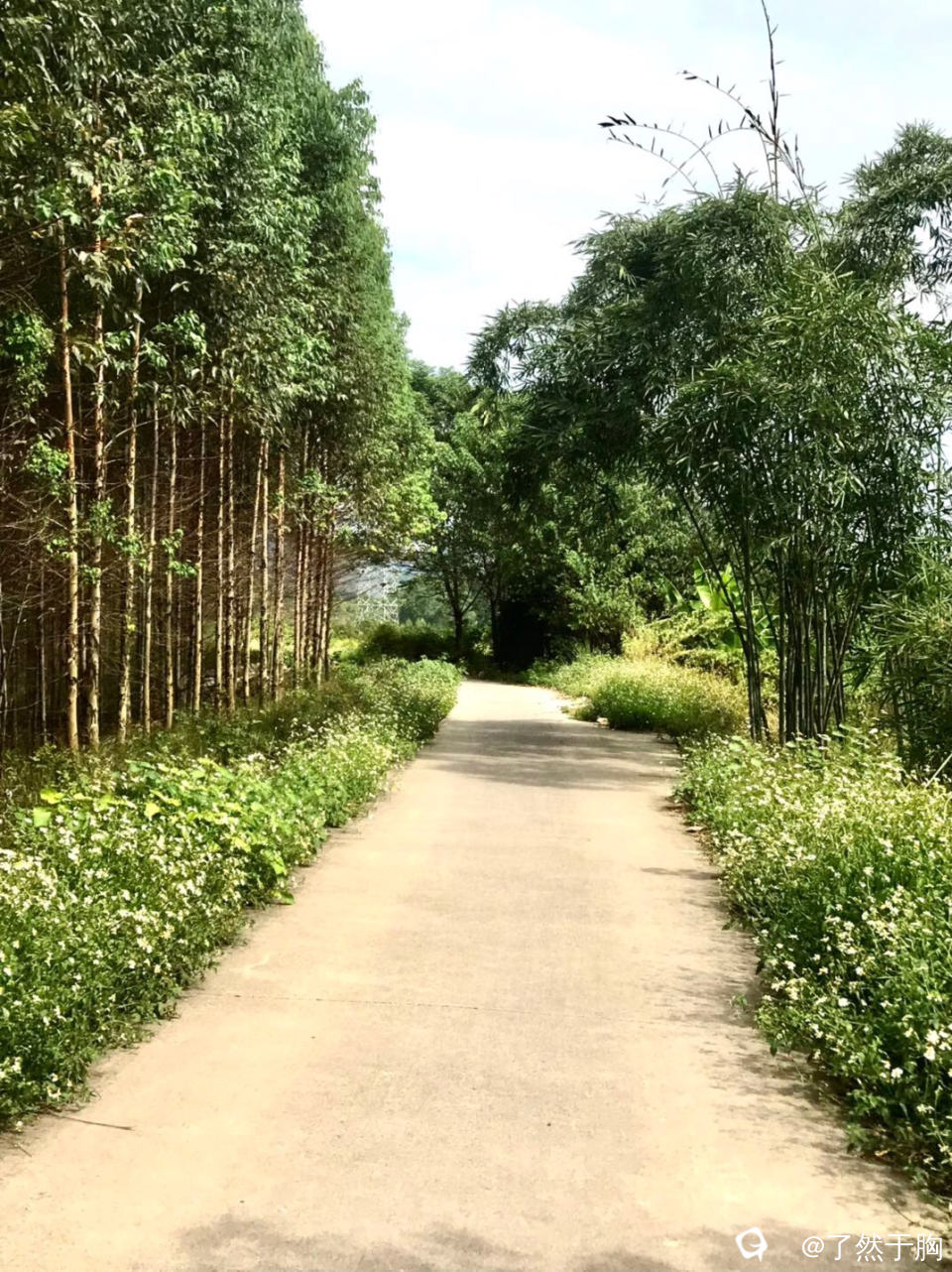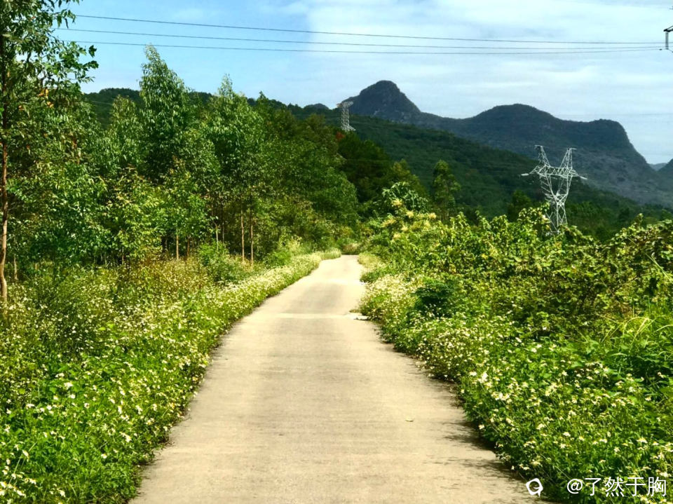 从灵西路出发至新月塘村,是村级水泥路。路两边鲜花盛开,蜂飞蝶舞,让人神清气爽。