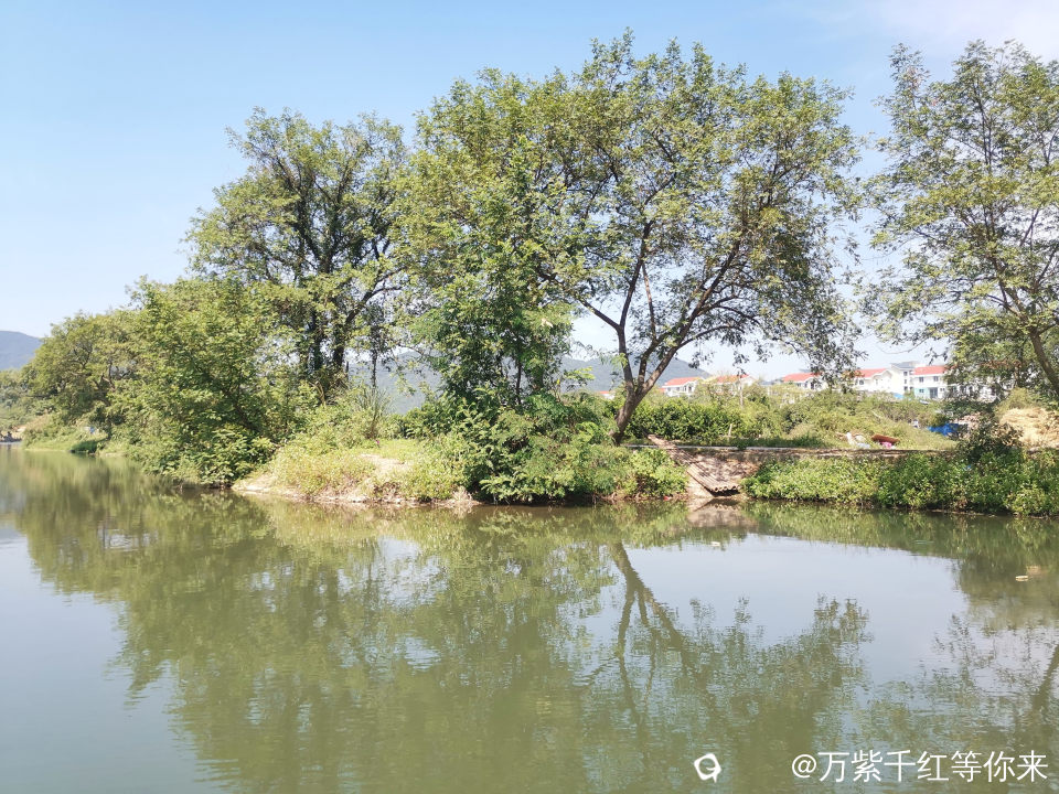今天又是一个风和日丽,云淡天高的日子。我们乘坐竹筏船,一边沐浴着秋天的阳光,一边欣赏着两岸的风景;尽情地享受这份秋日的快乐。