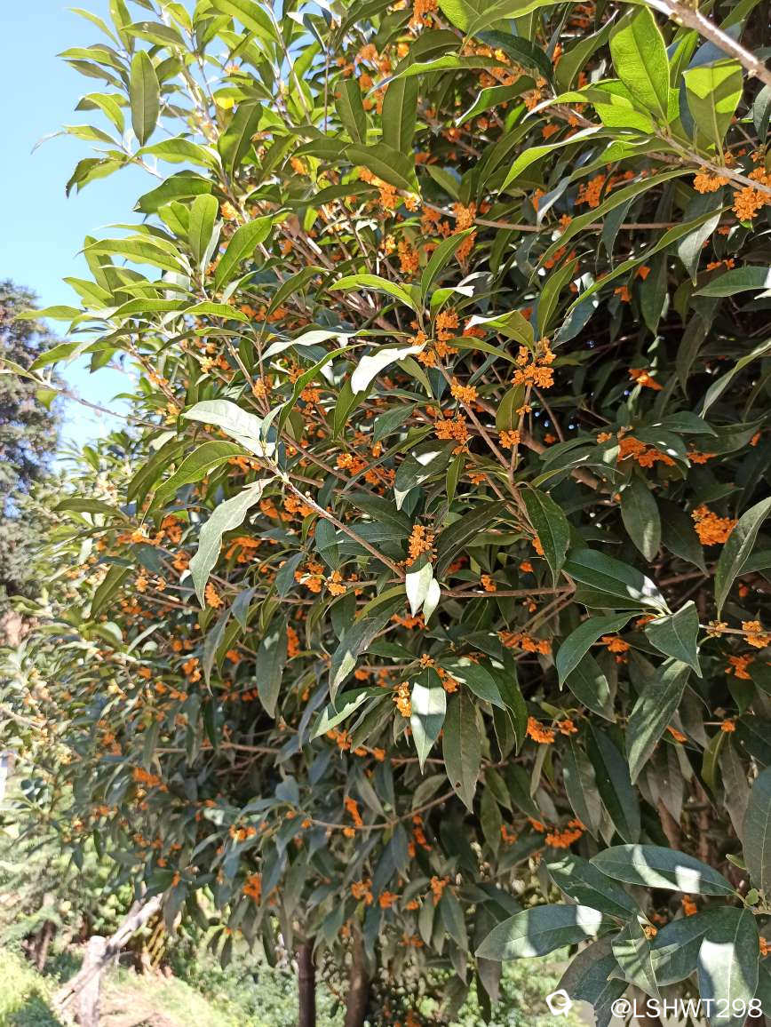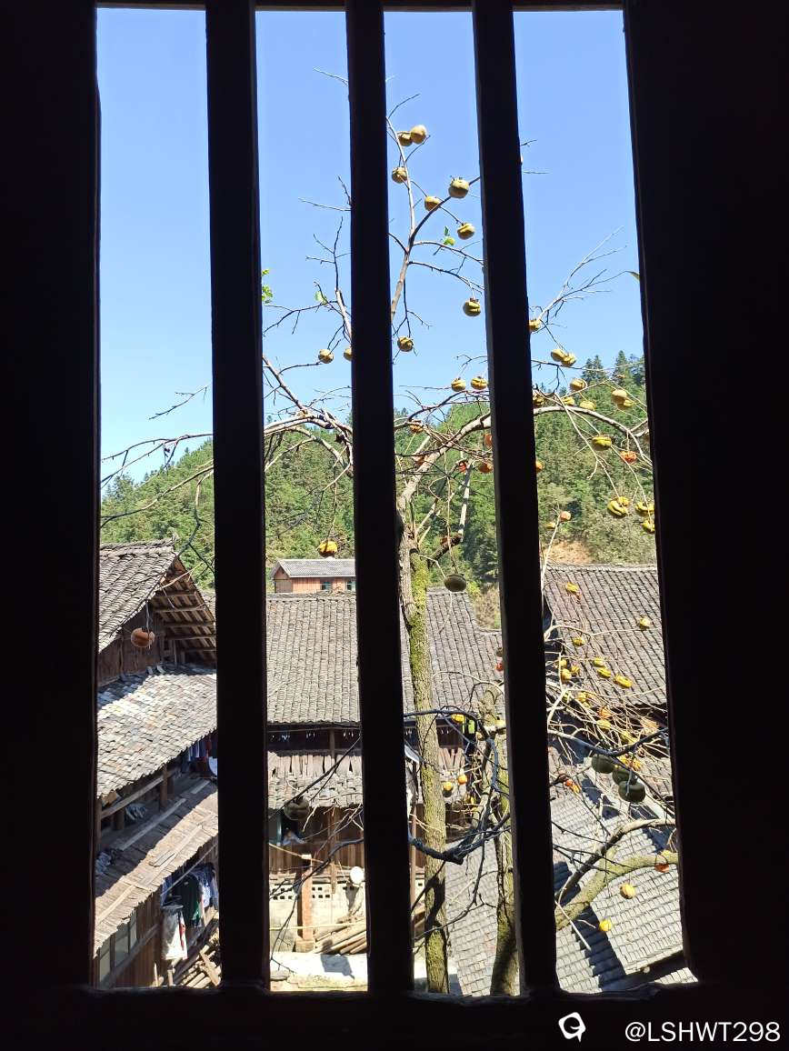 村寨桂花开得早,味随风洒满全寨,确实清爽。窗外秋后柿子依然坚挺。。。