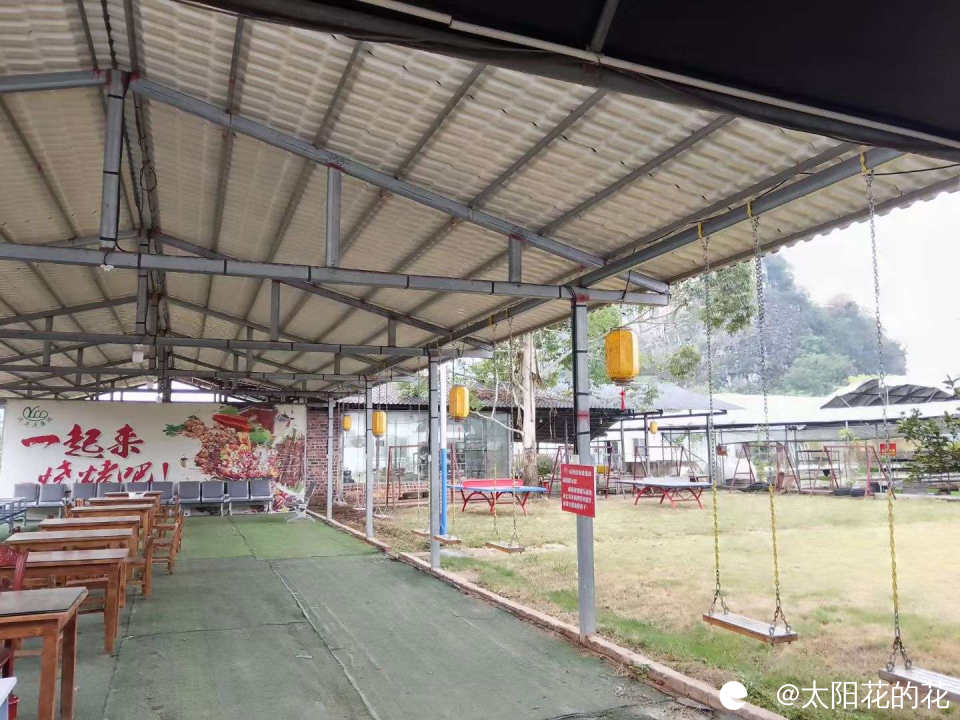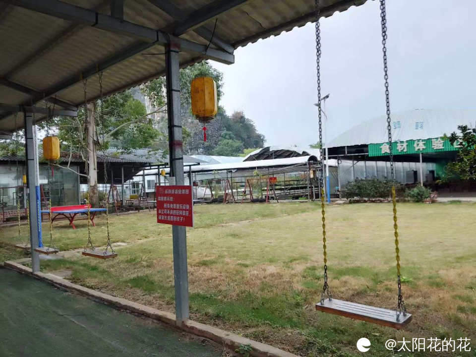 路过发现一个很不错的地方,集蔬菜种植餐饮于一体的农庄,里面有好多秋千,还有小孩子玩沙子的地方,这个地方好玩是好玩,就是养了只好凶的公鸡,它在好远的地方吃虫子,我们在那里荡秋千,后面那只鸡想跑过来攻击我们……