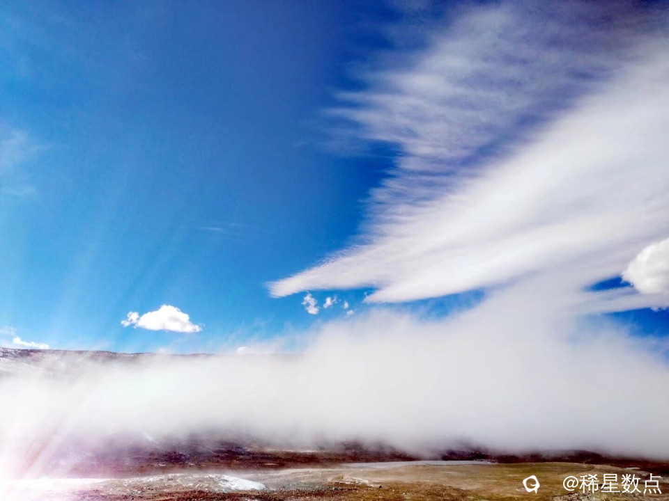 看天上的云雾不像水中月,水中月似静止的,你呆呆地看着,任凭思绪牵引,而此时这云这雾,让你的思绪情感好像无法跟上视觉,即便偶尔有浮想联翩,也是稍纵即逝。当我还在惊讶时,那些雾很快就变薄变淡,就那么一会儿功夫,不知跑哪里去了。天空重新呈现出蓝色的海洋一样,只是云朵少了许多,蓝蓝的天空更辽阔了。
