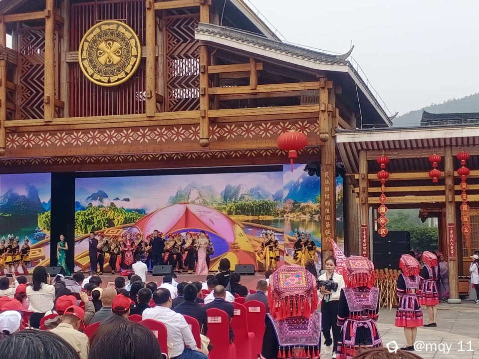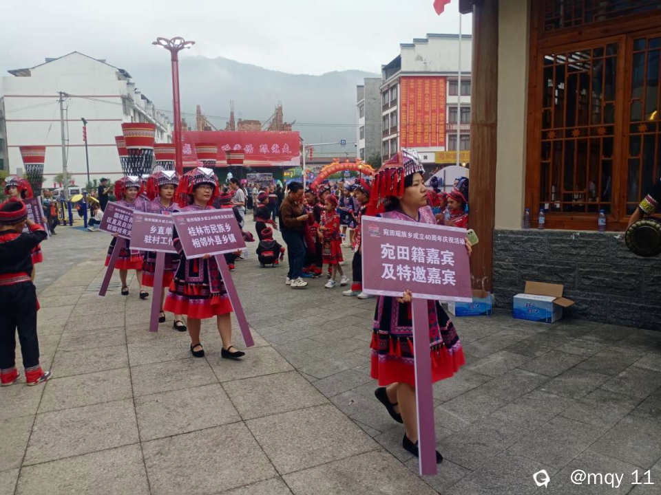 10月17日上午,在桂林临桂宛田瑶族乡乡镇新建的同心广场,这里正在进行的是宛田瑶族乡成立四十周年的庆典以及歌舞表演。