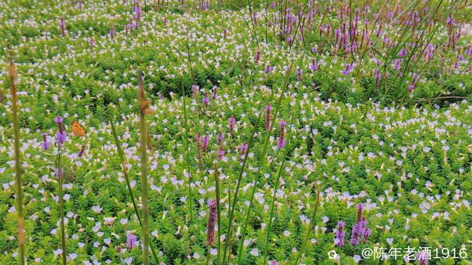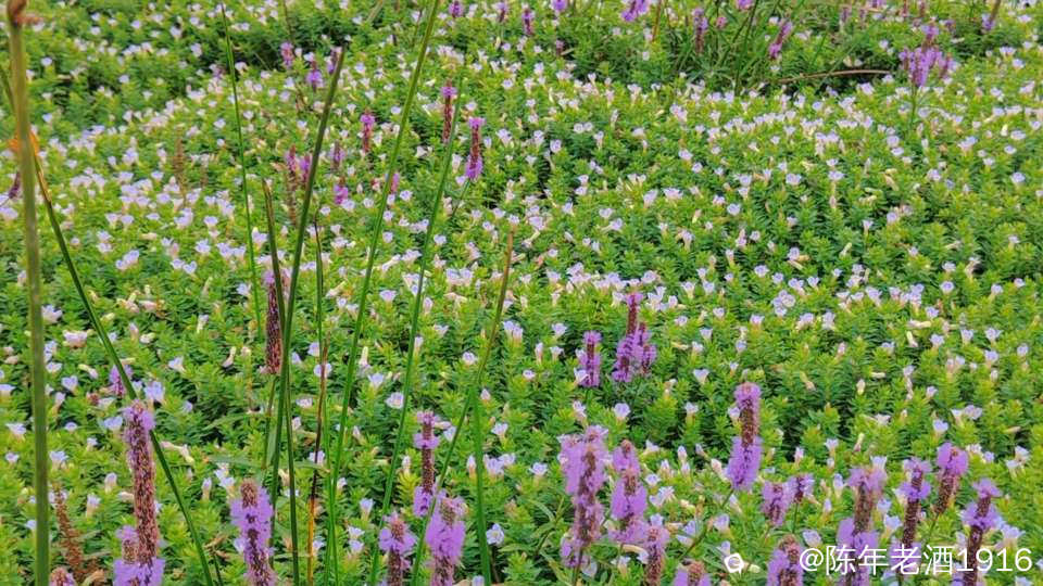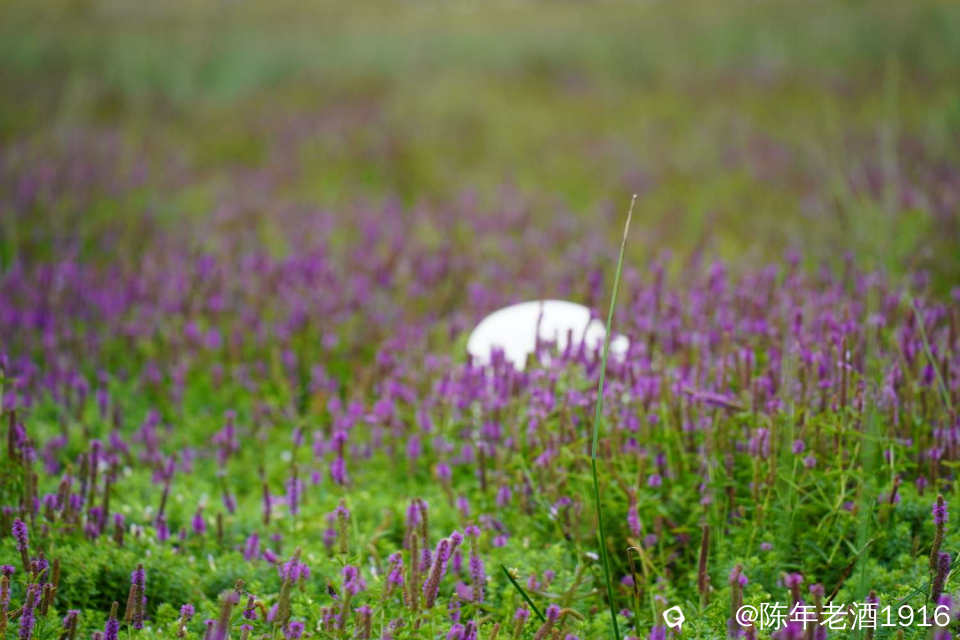 近看,草地上生长着紫色和白色两种小花,紫色小花长得稍微高点,白色小花席地而生,这山谷也是因为这些小花而增添色彩。跟大哥大姐聊着拍着,就这么”熟”了,突然想起来,原来有两位大姐还是曾经在某地偶遇过,于是乎就帮忙拍了几段视频,2点多钟收工回家。