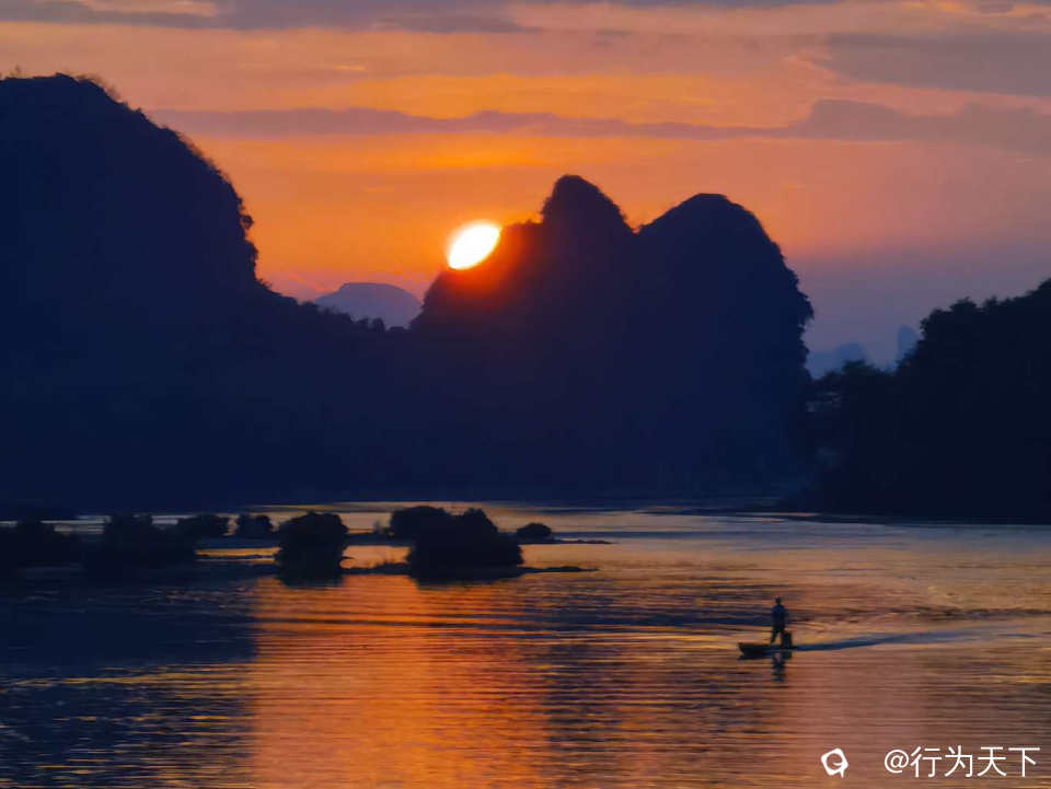 [秋天该有的样子] 金秋黄昏,漓江惊现“卧佛吞日”