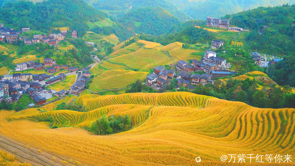 丰收时节,一定要来一趟龙脊梯田,一不小心就走进了油画中,醉在那金色的秋日里……