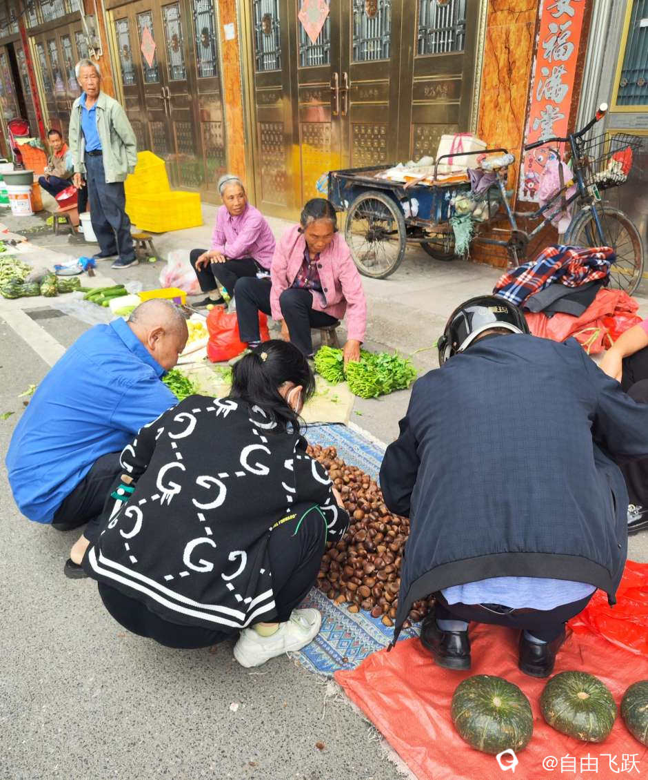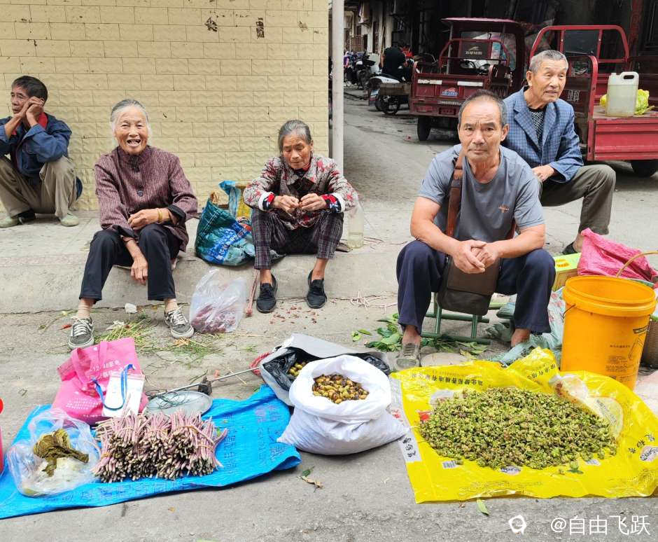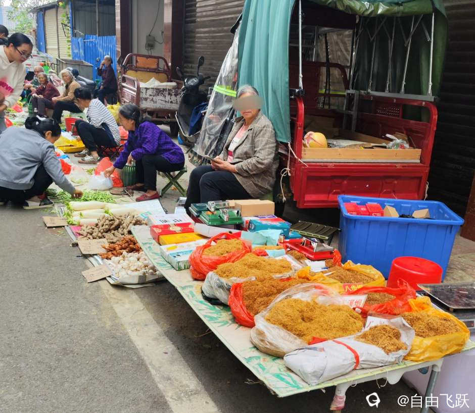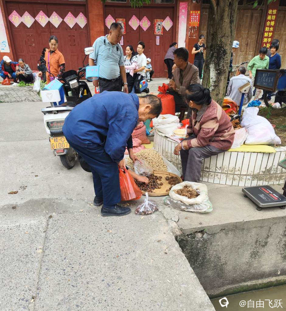 金秋十月是收获的季节,庙岭圩旁有一棵金桂树花开正香,闻着桂花香走进圩里,圩中物产丰富人气稠密,来赶圩的至少有上千人,但是卖货的都是些七老八十的农村老人家,排坐在镇上街道两边摆开地摊,卖的是农作物,用的是老杆秤,有方桌台面的是小贩,卖天南地北的流通品,买家中年轻人却是不少,因为年轻力壮所以买的大包小包扛起就能行走,比老人家们强多了。