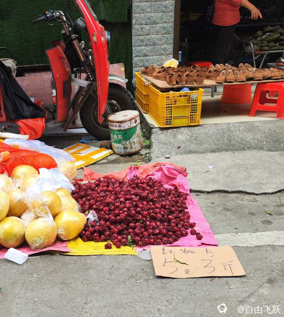 逛了半天,走出圩外,才想起该买的没有买,该买的是啥?是泡山楂酒的山楂果,去年买了十几斤泡山楂酒,泡好以后酒味甘冽,非常好喝,一坛酒很快见了底,今年还想泡,但是现在没有见到山楂果卖,只见到少量刺梨果(金樱子)和鸡爪果,不太合心意先不买,估计再等几个圩日才会有山楂果卖,现在果子还在树上挂着,要等到熟透了才肯下来。