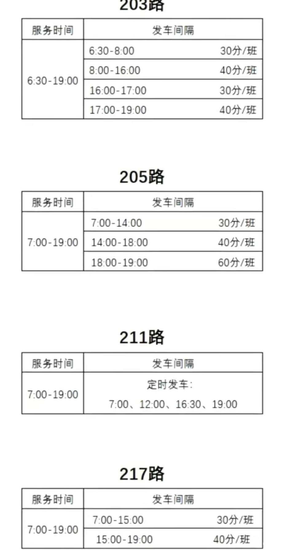[新闻爆料] 【公告】203路、205路、211路、217路发车班次及时间调整
