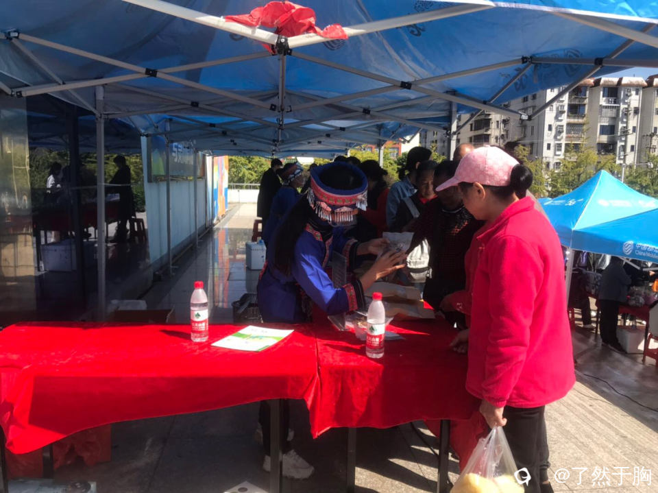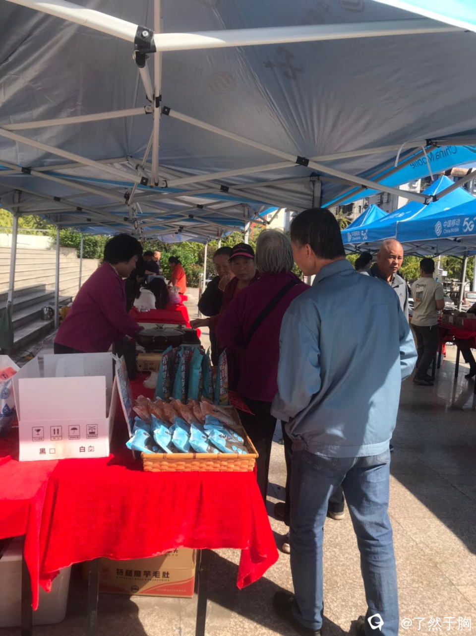 现场各种农产品都能免费品尝,有的老太太就专门在此吃午餐了