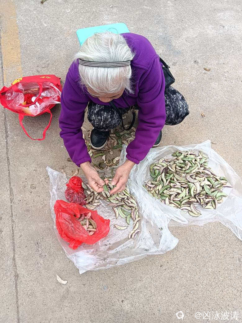你要的梅豆才一元五角,她老人家还要帮摘好,为这个好心的老人点赞.,是我怎么样都要给人家2块钱吧。