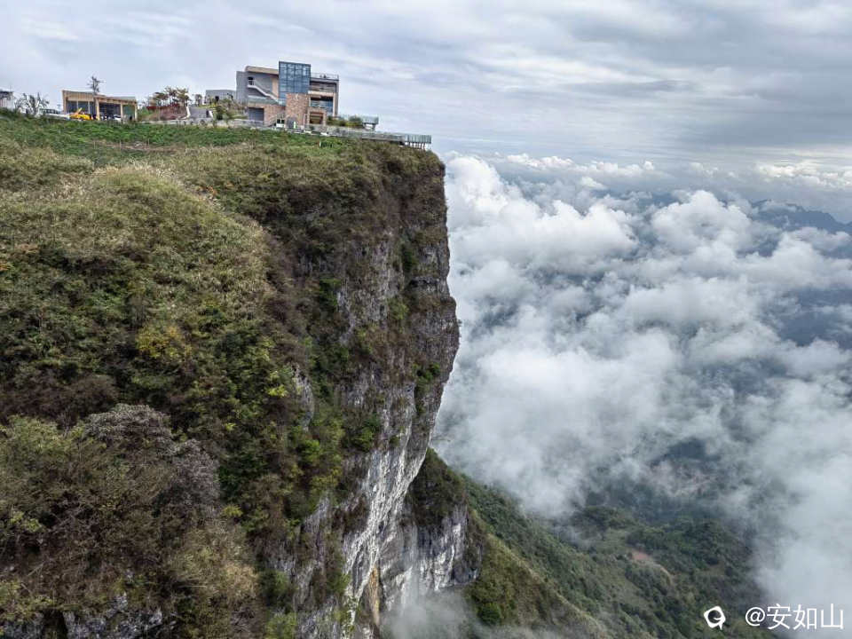 山崖上的建筑是一家高端酒店,我们网上查价房价上千,旁边的房屋是家观景台餐厅,时至中午,我们在 ...