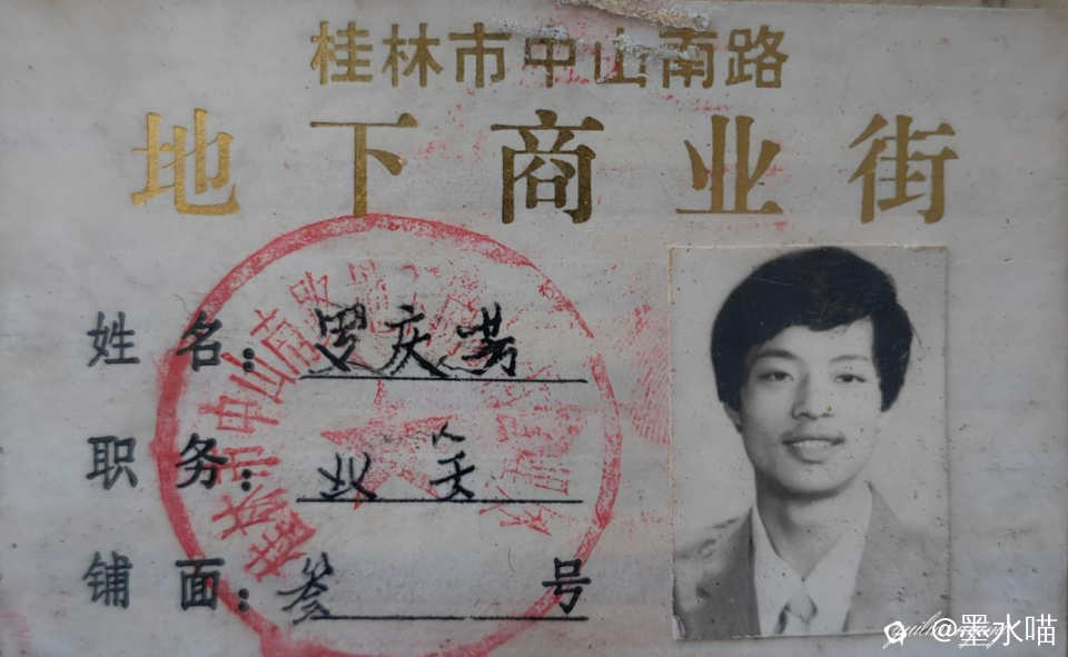 82年小舅在家人的协助下,在桂林跃进派出所对面开了第一间铺面,就是上一期美藉日本人出目里利吕井来桂林旅游时拍的铺面(感谢@方待夜半听君语发表出来),当时用我小舅的名字叫“罗庆芳百货店”,这是桂林市最早在工商注册的店,我小舅记得是工商注册的第54号。