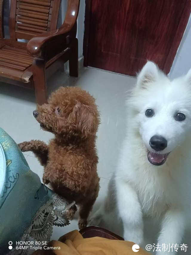 两只狗狗找领养,都是母的,赛摩耶六个月,泰迪2岁,免费,只要对狗狗好就行,每个月定期拍视频给原主人报平安即可,微信:wwwwww1010523466