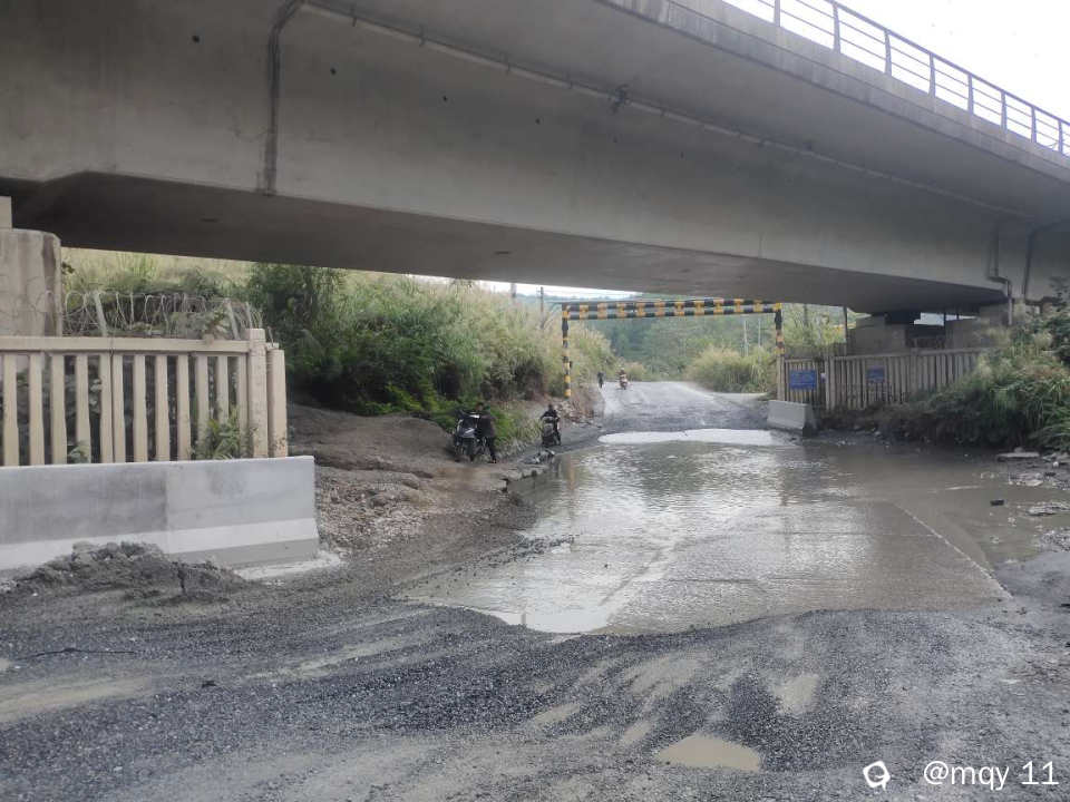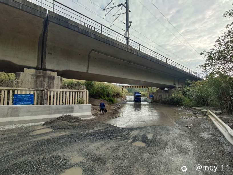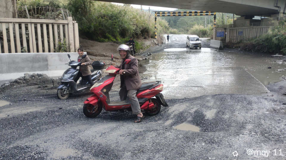 时隔一个星期,再走此路,还是看到积水成渊,许多过往的村民,也是在提心吊胆的沿路基沙石通过。在此停留一会,就看到两个老司机,差点半坡起步失败,因为这里的沙石非常厚,轮子非常容易打滑。