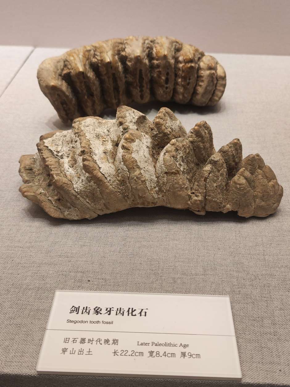 漓水春秋展出一整部桂林历史文化,万万没想到,桂林居然有宝积山遗址出土的大熊猫骨骼化石,难道宝积山上曾经有过野生的大熊猫?那山上连竹子都没有,大熊猫吃啥呢?并且穿山有剑齿象化石,那剑齿象晓不得有多高大?桂林有过宝积岩古人类,古人类吃过这象肉吧?