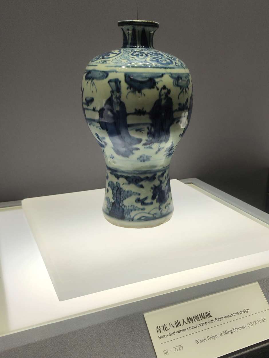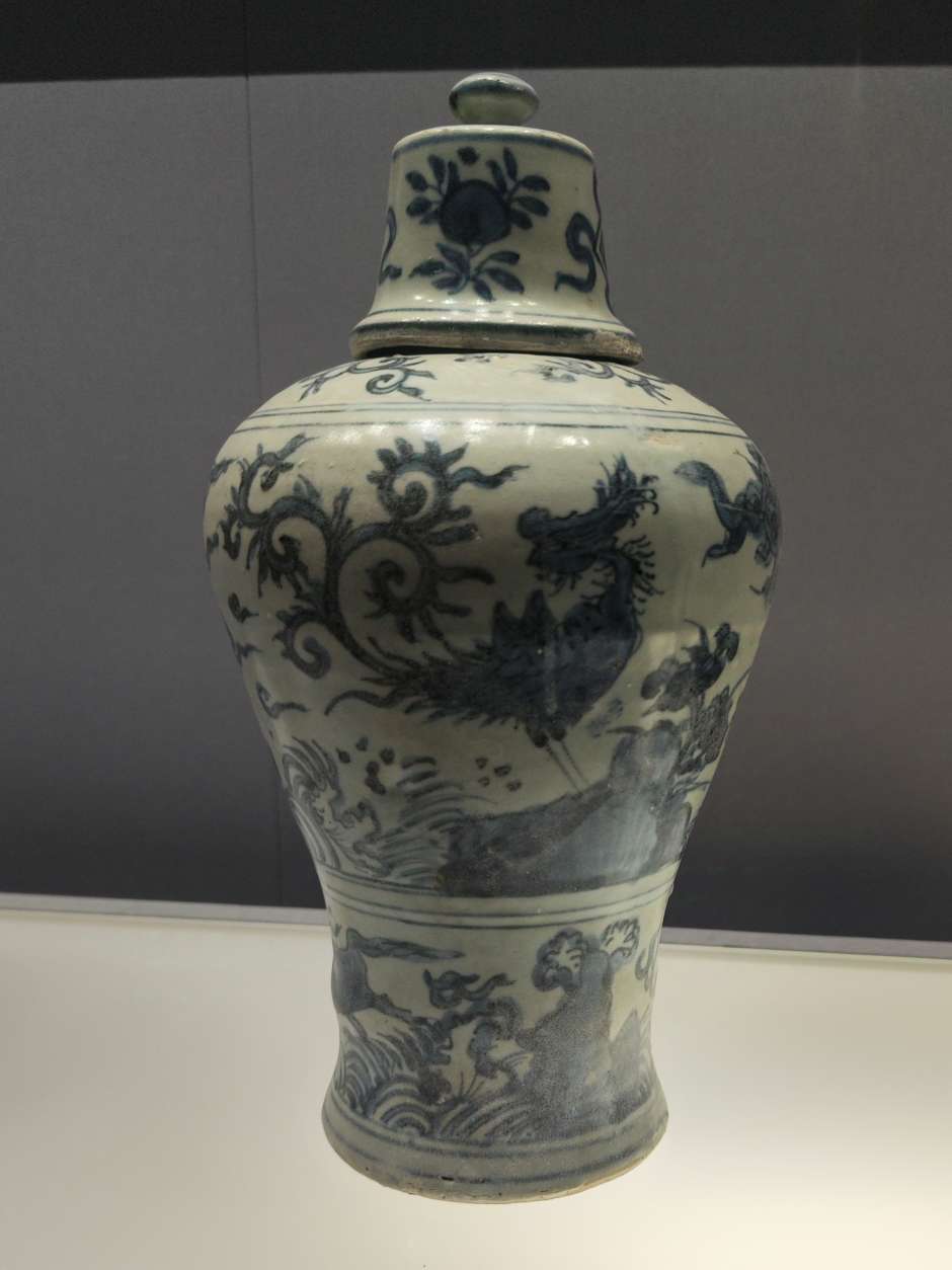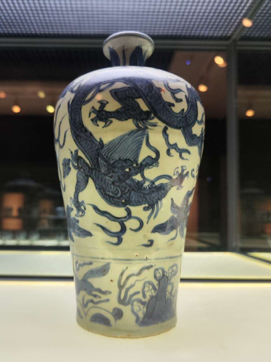 发现梅瓶图案很多模模糊糊的,可能是烧制时绘画笔触被熔化了,像是PS用了模糊工具一样。