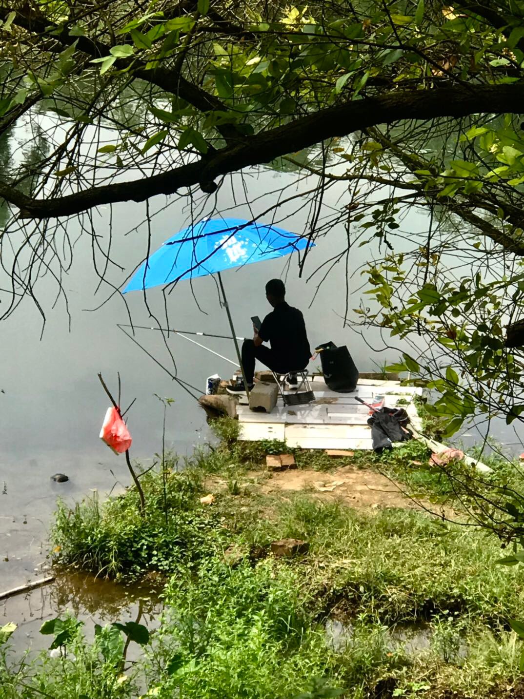 甘棠江畔,草青树绿,风和日丽,很是宜于垂钓。