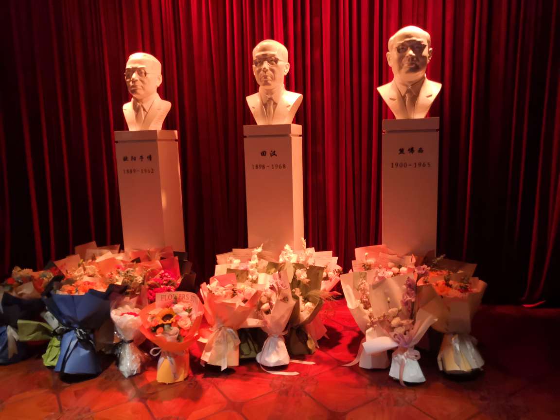 演出结束后,我们看到欧阳予倩,田汉,熊佛西的雕像前摆满了敬献的鲜花,向艺术馆的开创者们致敬!