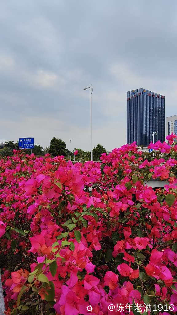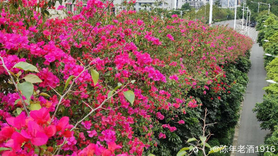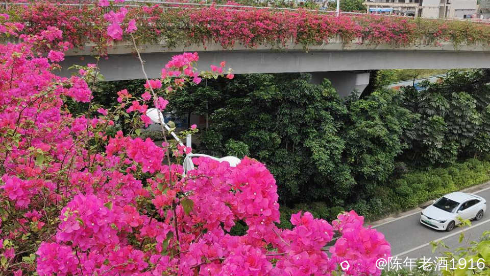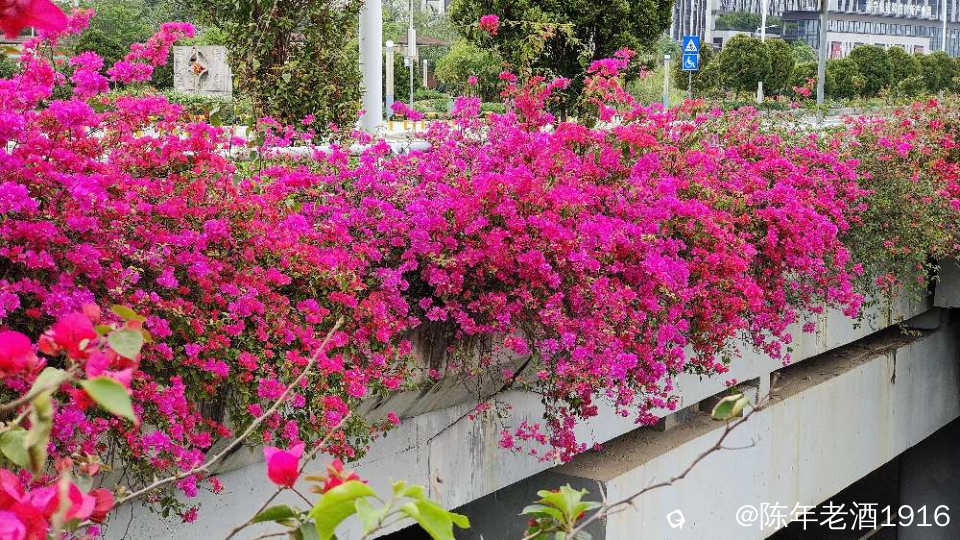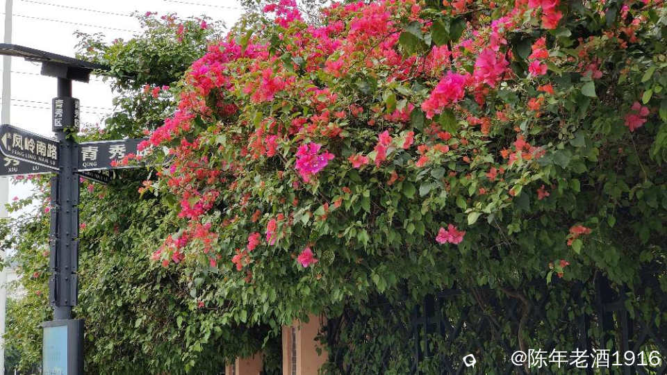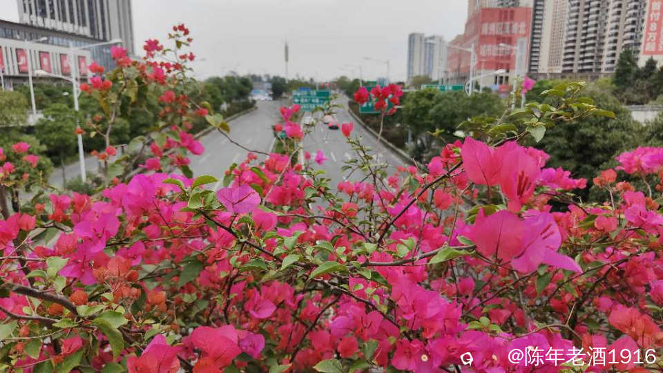 南宁街上、立交桥、围栏等随处可见的三角梅,仿佛置身于花的海洋之中,所到之处都忍不住掏出手机将这美好瞬间记录成”永恒”