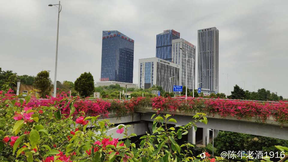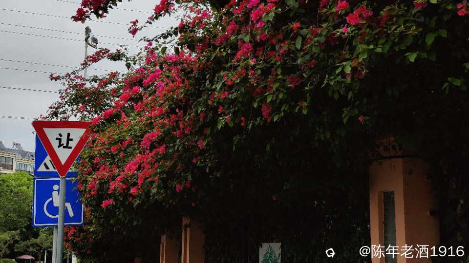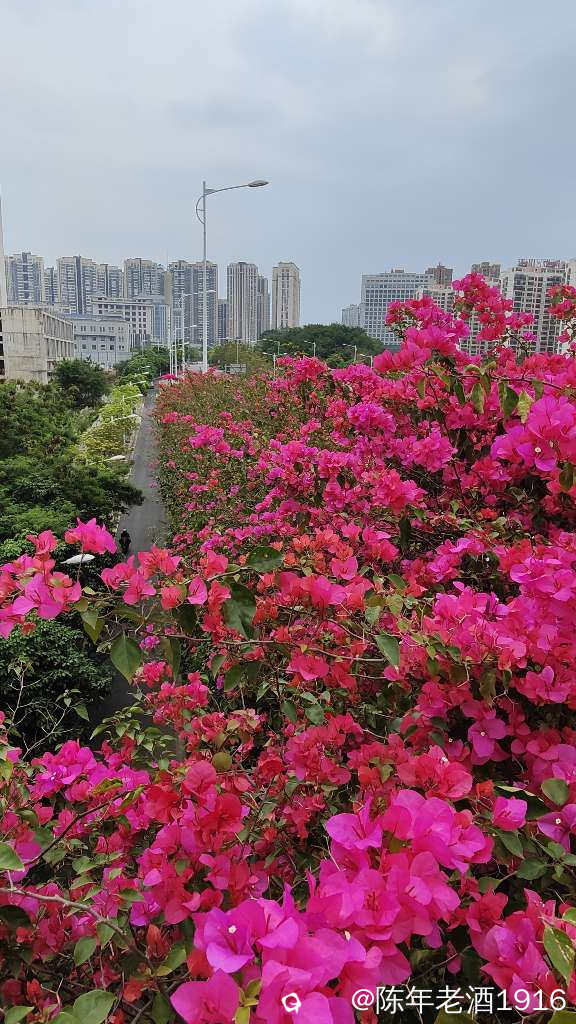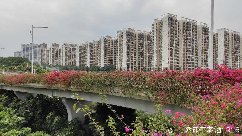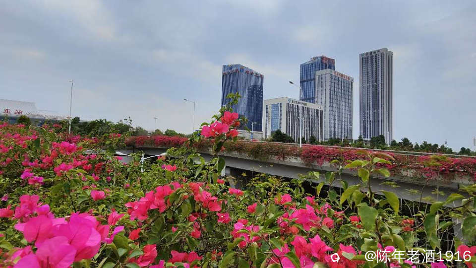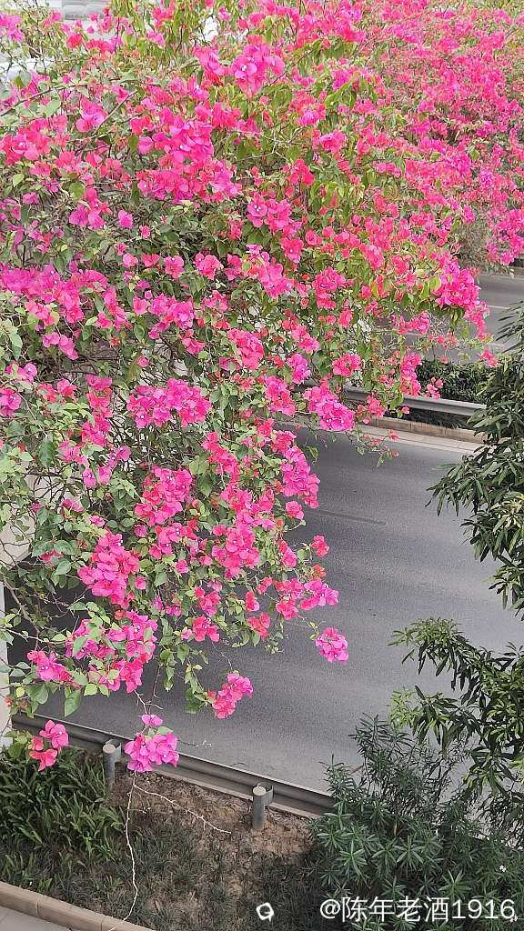 南宁街上、立交桥、围栏等随处可见的三角梅,仿佛置身于花的海洋之中,所到之处都忍不住掏出手机将这美好瞬间记录成”永恒”