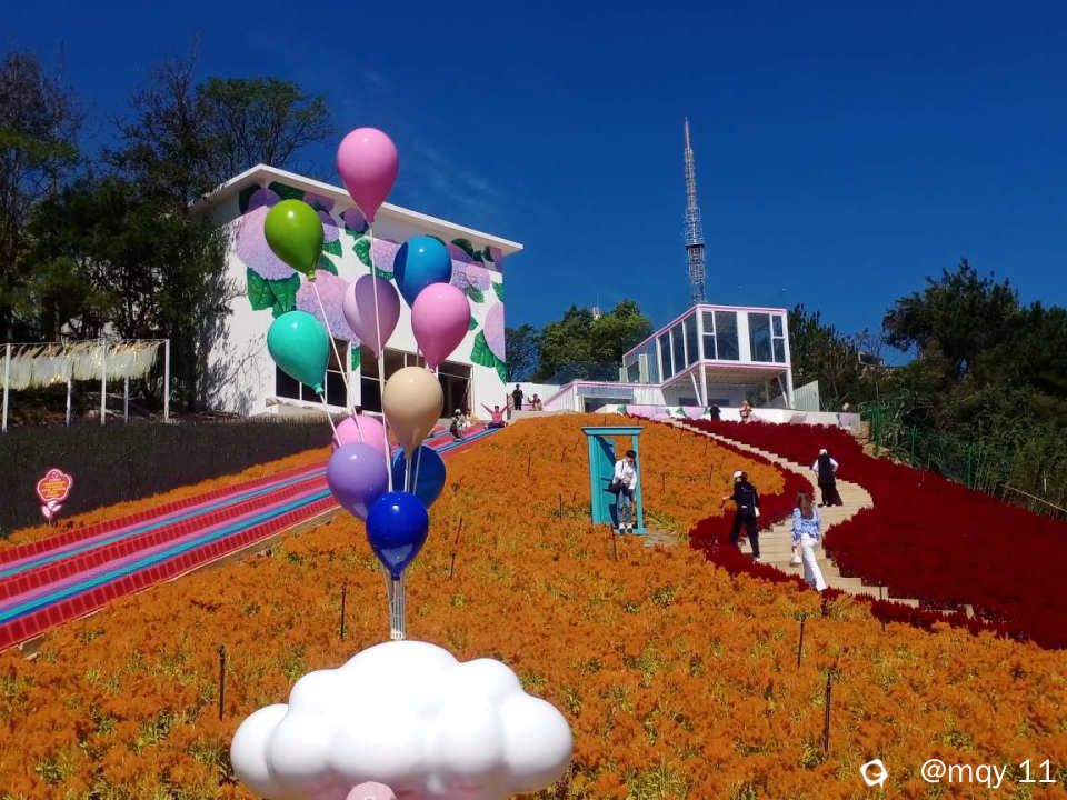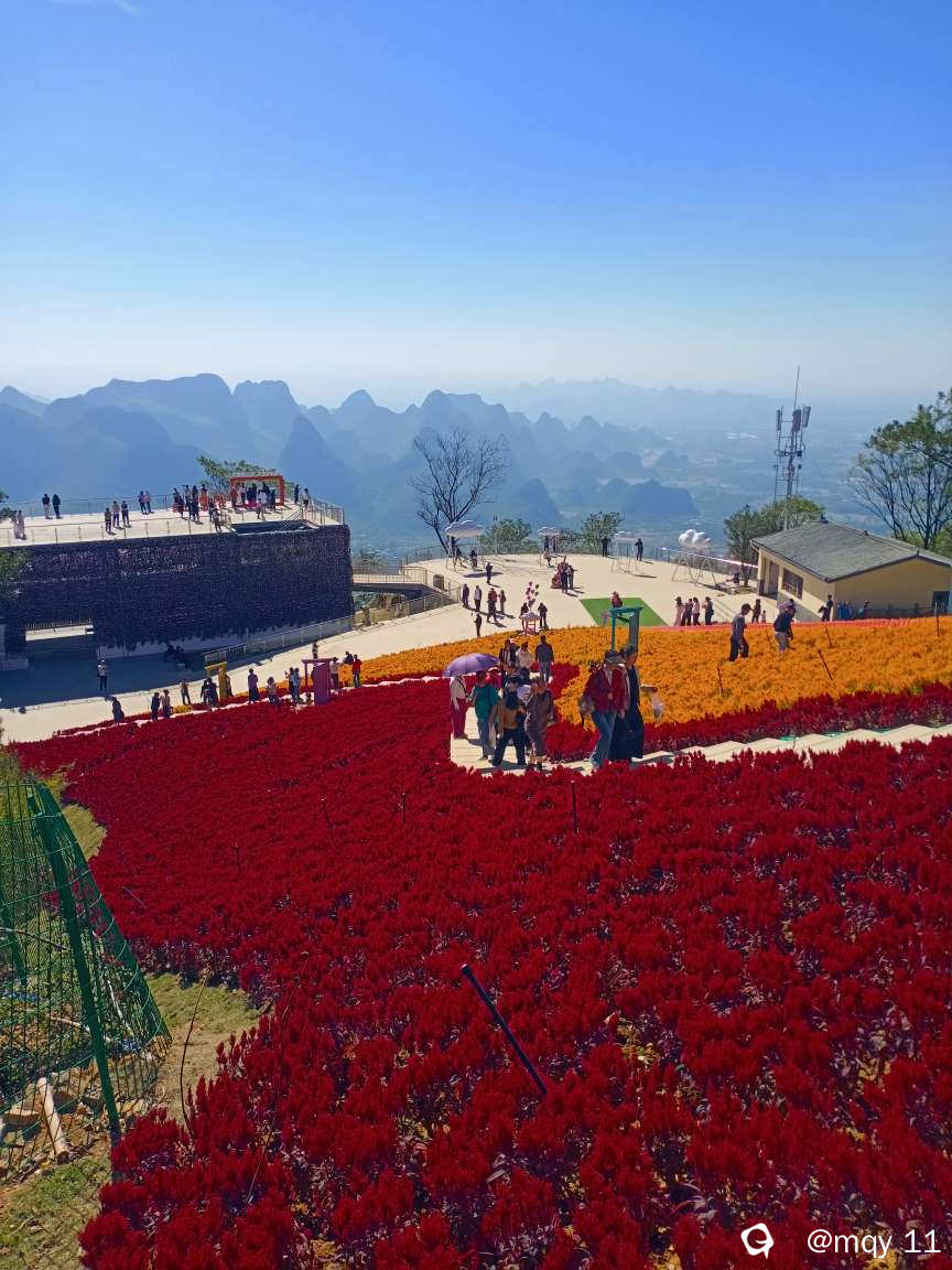 而立冬之时的桂林,风和日暖,花开富贵,而尧山顶上的新风景“莫纳”花园,已变成了尧山一道浪漫的风景线。
