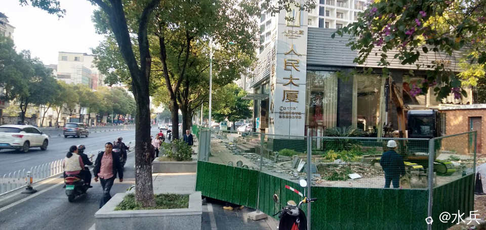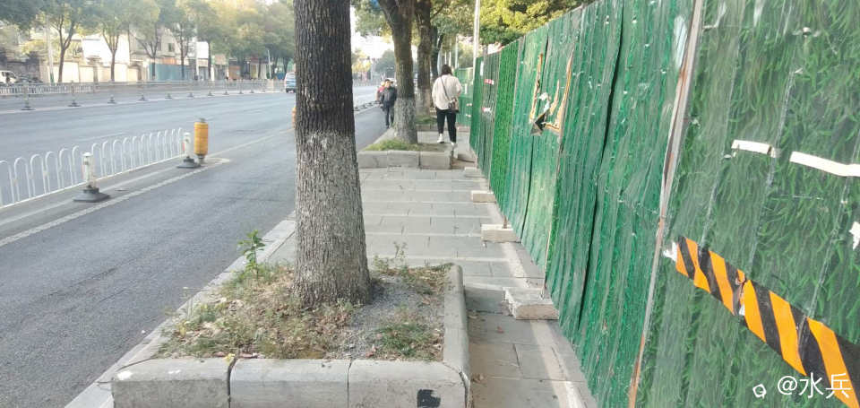 围起来就要抓紧时间修好,把行人逼到非机动车道很不安全,人民路的非机车道本来就窄。