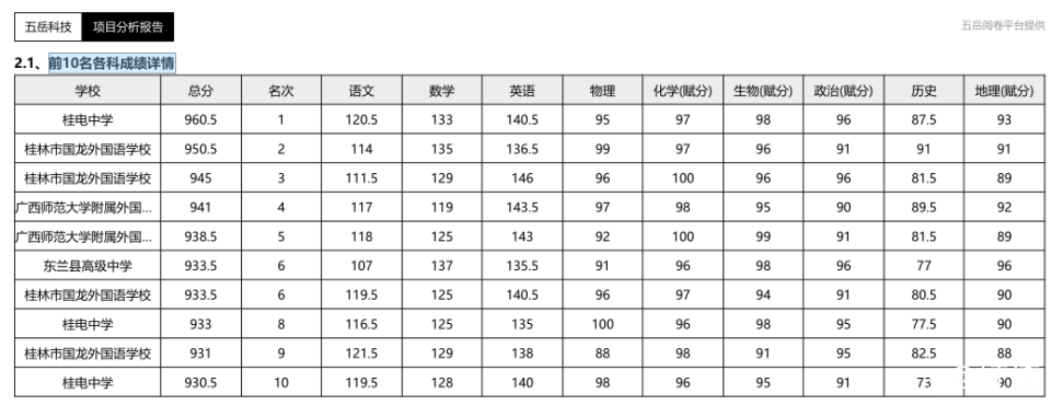 刚刚结束的桂林、百色、河池123所、98000名高一学生联考中,桂电中学独占鳌头,勇夺最高分960.5分(满分1050分)。