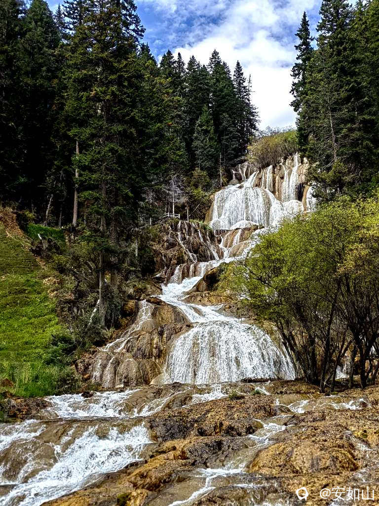 牟尼沟距离松州古城二十公里,海拔最低2800,最高4070,是国家五A景区,园区面积很大,园内里的扎嘎瀑布,落差大水量大,号称中华第一钙化瀑布,瀑水清澈,在七彩的树林里穿梭,或成溪或积成潭,沿着林间步道观瀑看水,景色怡人
