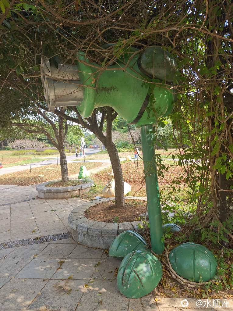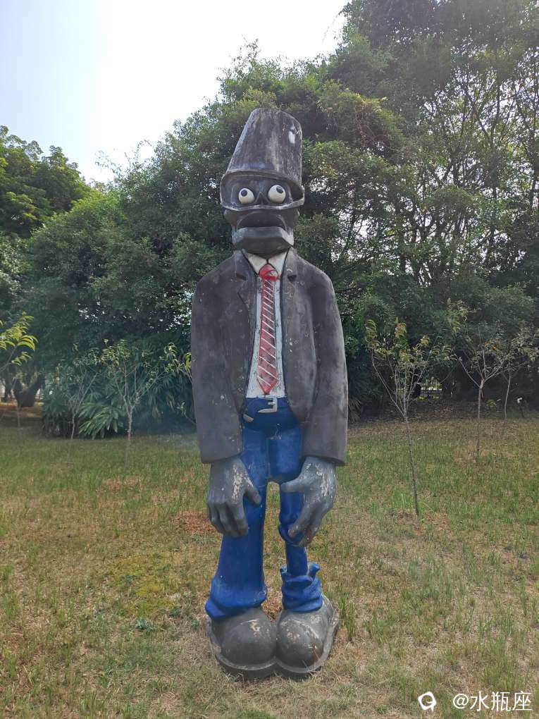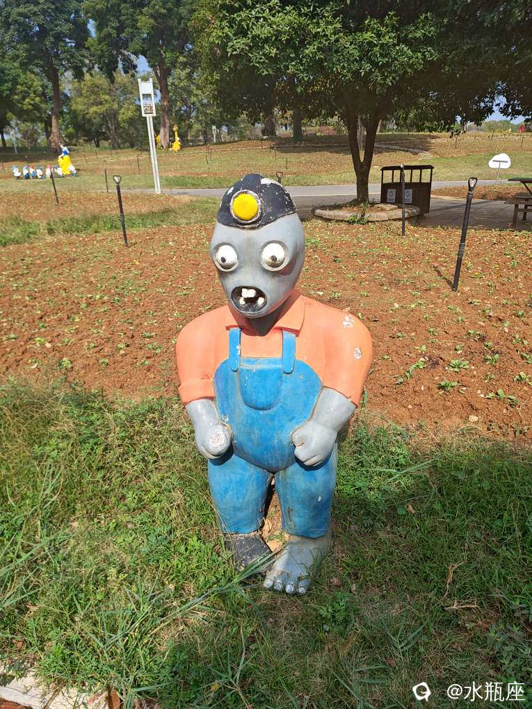 这些雕塑在这里有很多年了,很破旧了。娃玩植物大战僵尸1,里面的人物比我还认识得多。