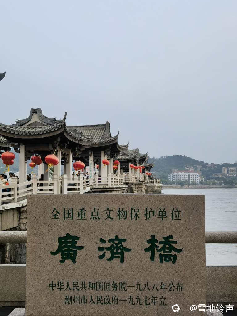 在潮州,有一座桥,承载着岁月的痕迹,诉说着千年的故事,就是广济桥。  白天,它沉稳而大气,桥墩坚实,亭台错落。
