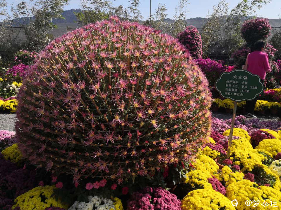 这次菊展,最惹人喜爱的是单株开花成百上千朵的大力菊。据说大立菊的种植技艺要求非常高,光是看见每朵花都需要绑扎整形都让人啧啧称奇,而且还需经过一年半时间才能出成品。