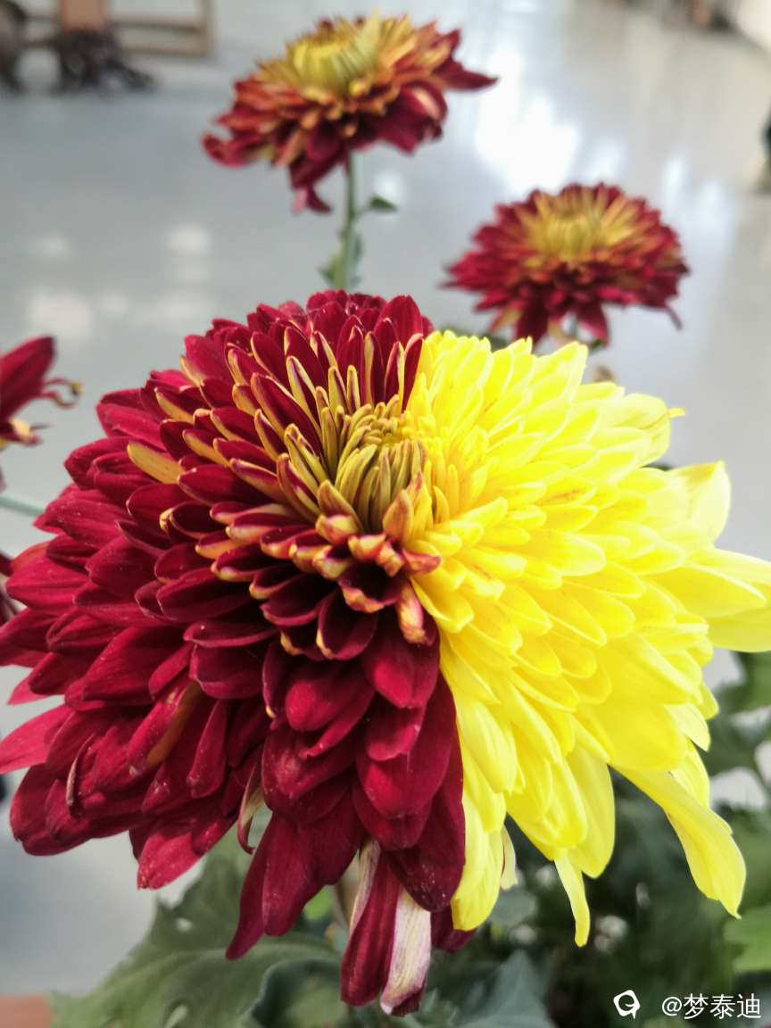当你看到这朵红黄双色的菊花时一定会很惊讶吧!这是2017年从河北唐山引进的“一品红”菊花品种,在桂林栽培几年后发生了变异,才开出这罕见又令人啧啧称奇的花朵。