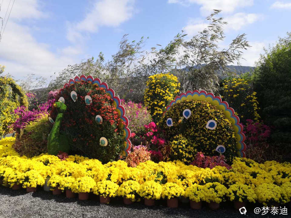 在菊展中除了有孔雀开屏,还有兔子,猫咪等动物造型,不知看菊展的你注意到了吗?