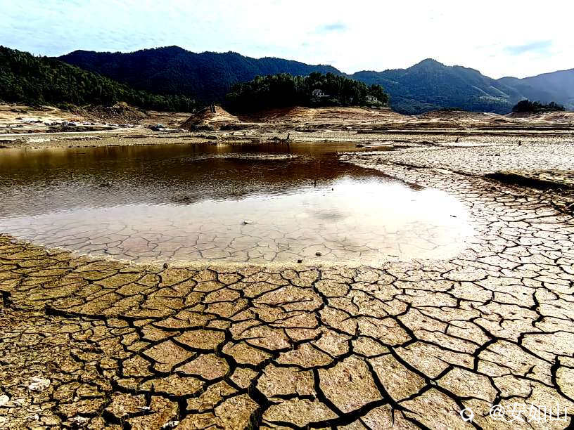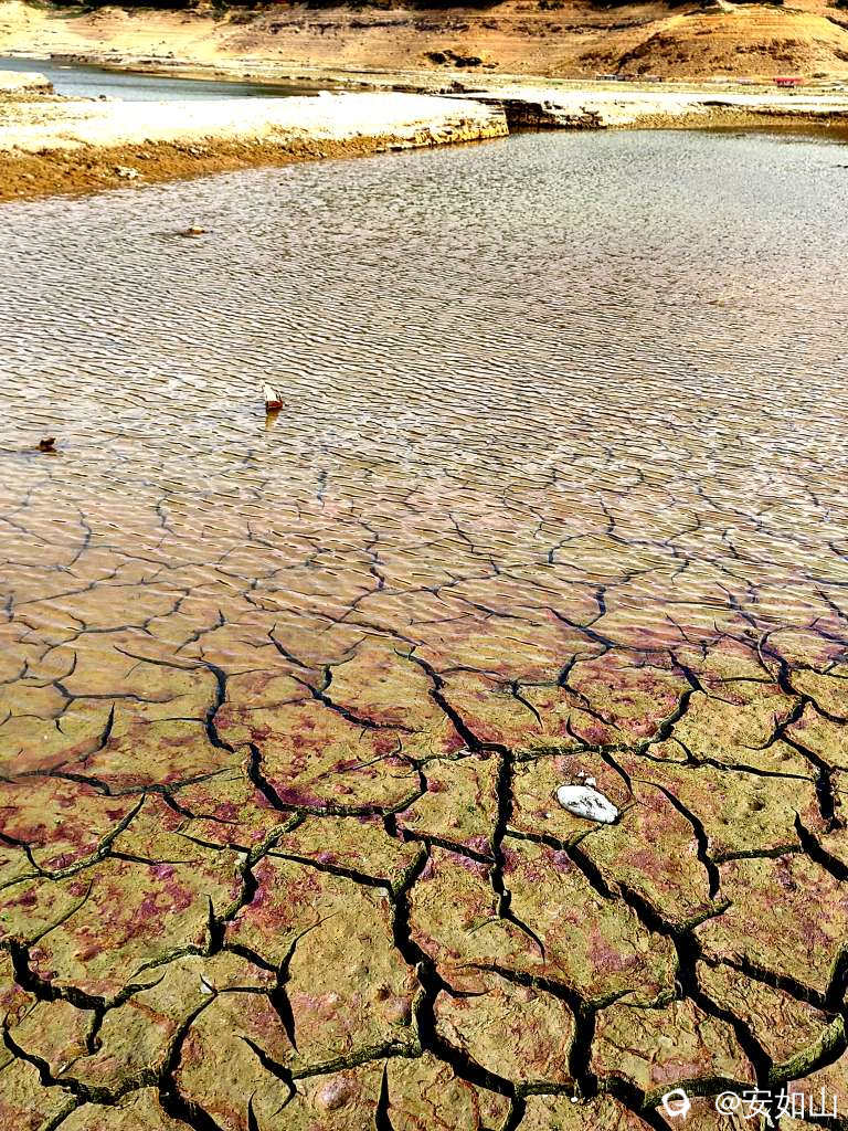 青山依旧在,库水已无容,白发村民涸泥上,看小溪细流。一瓶三花与客逢,