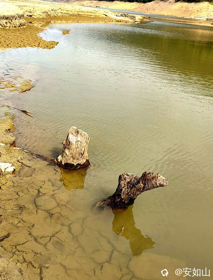 沧海桑田,今年水库放干水维修水坝,湖底干涸的区域很大,我们是从公平往下的一个口子下湖底的,这里不收费,车也开得更远,湖底能看见过去的村庄房基和原石子路,有老坟,残桥,因为是集体行动,我们只是草草的看了一下,算是到点打卡。最近在坛里看帖,关于青狮潭的片片很多也很美,有红衣美女和无人机确实能拍出精彩片片,我的手机记录了我的眼中风景,晒出