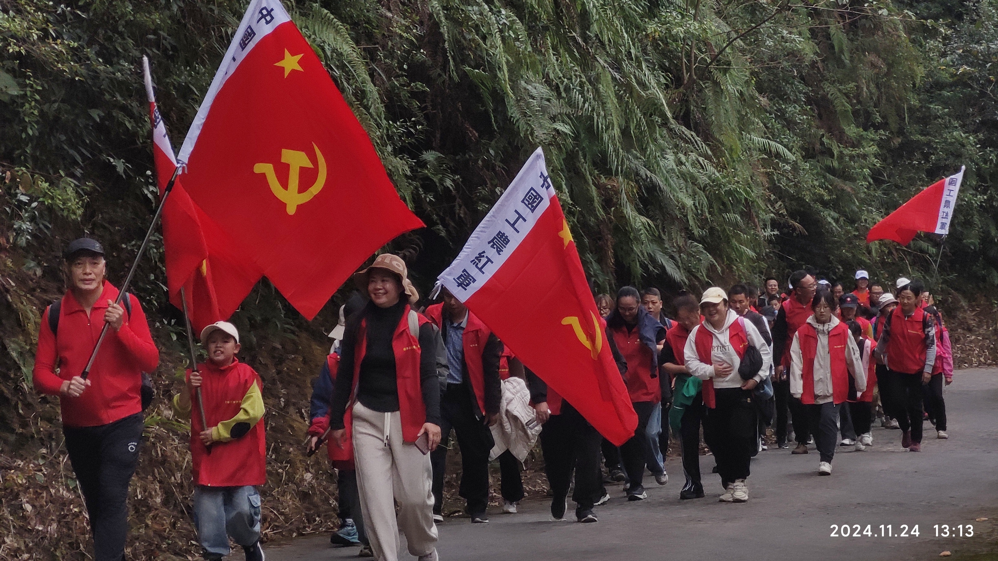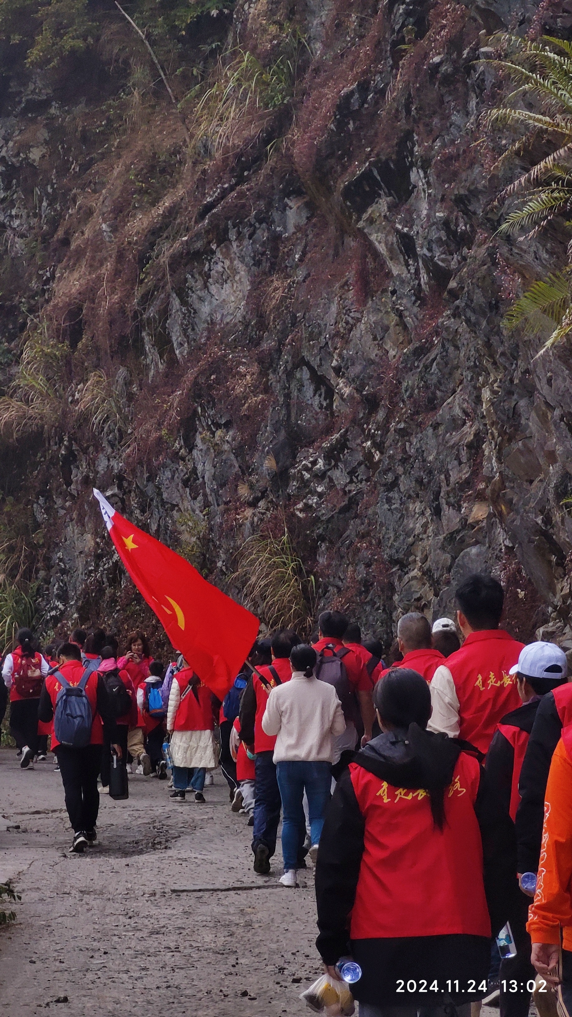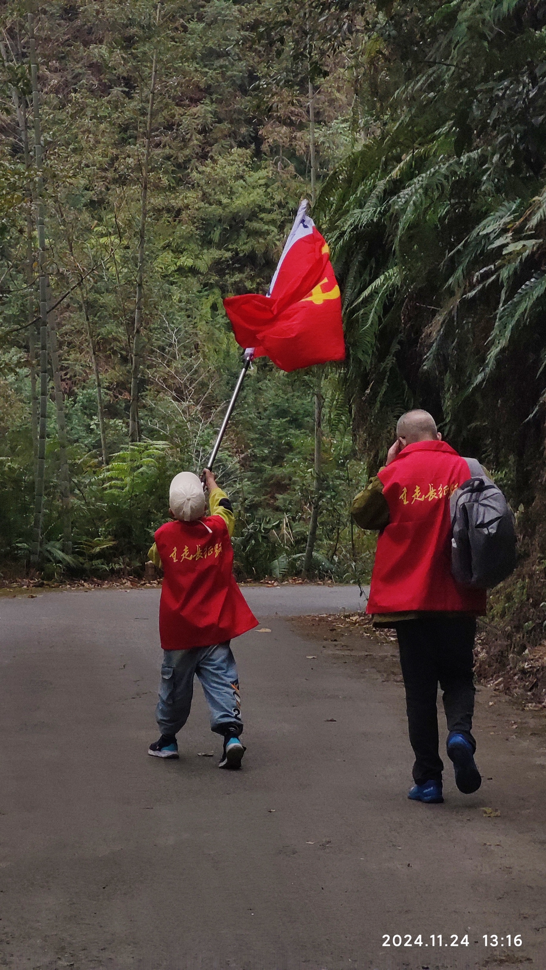 昨天 11月24日,党员和群众200余人,参加了重走长征路——灵川段。从灵川九屋东源村,经过簸箕塘、新寨,到才喜界红军烈士墓10.5公里。沿着红军的足迹,感受红军精神,缅怀革命先烈,见证红色瑶寨的新变化。