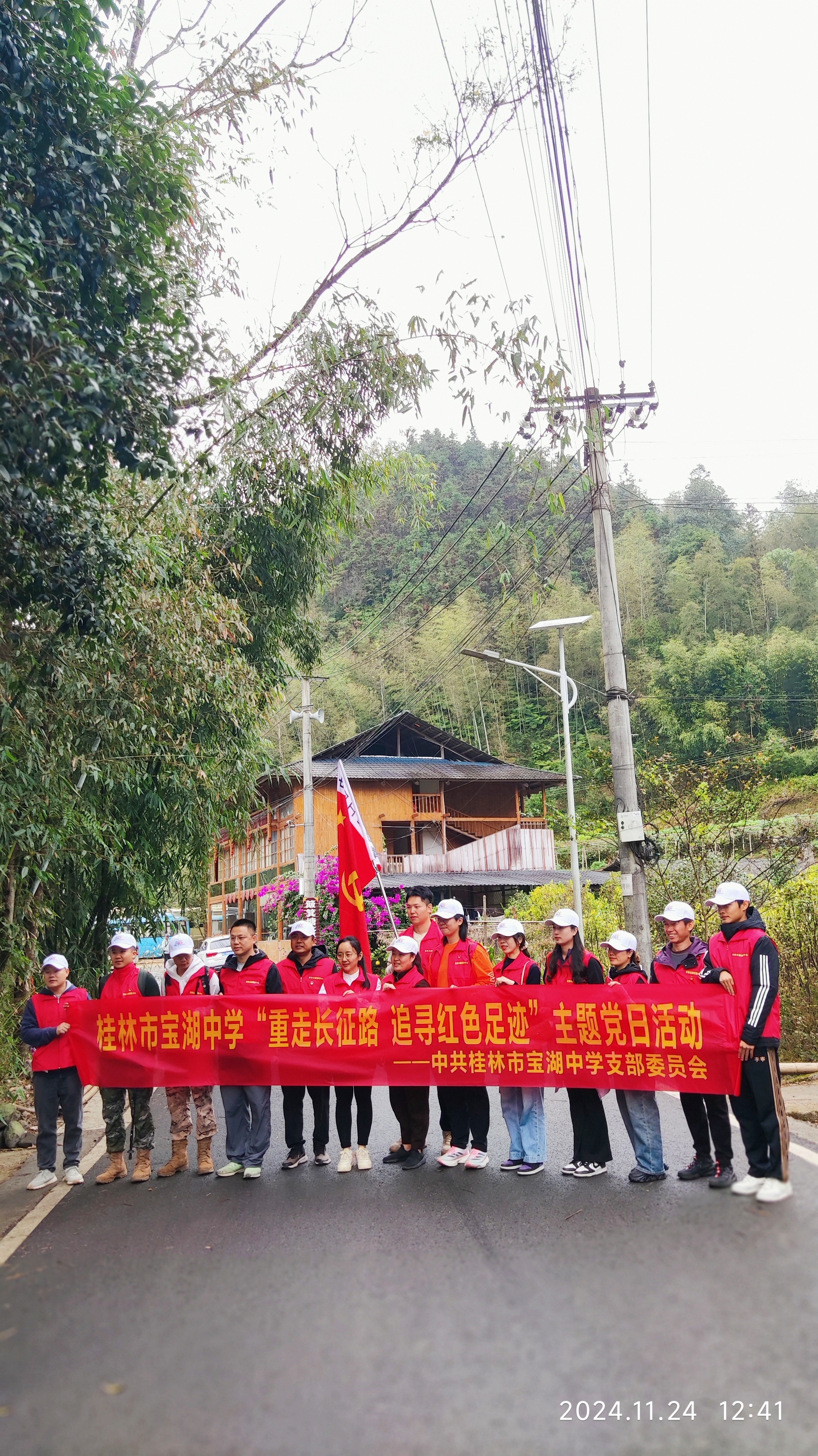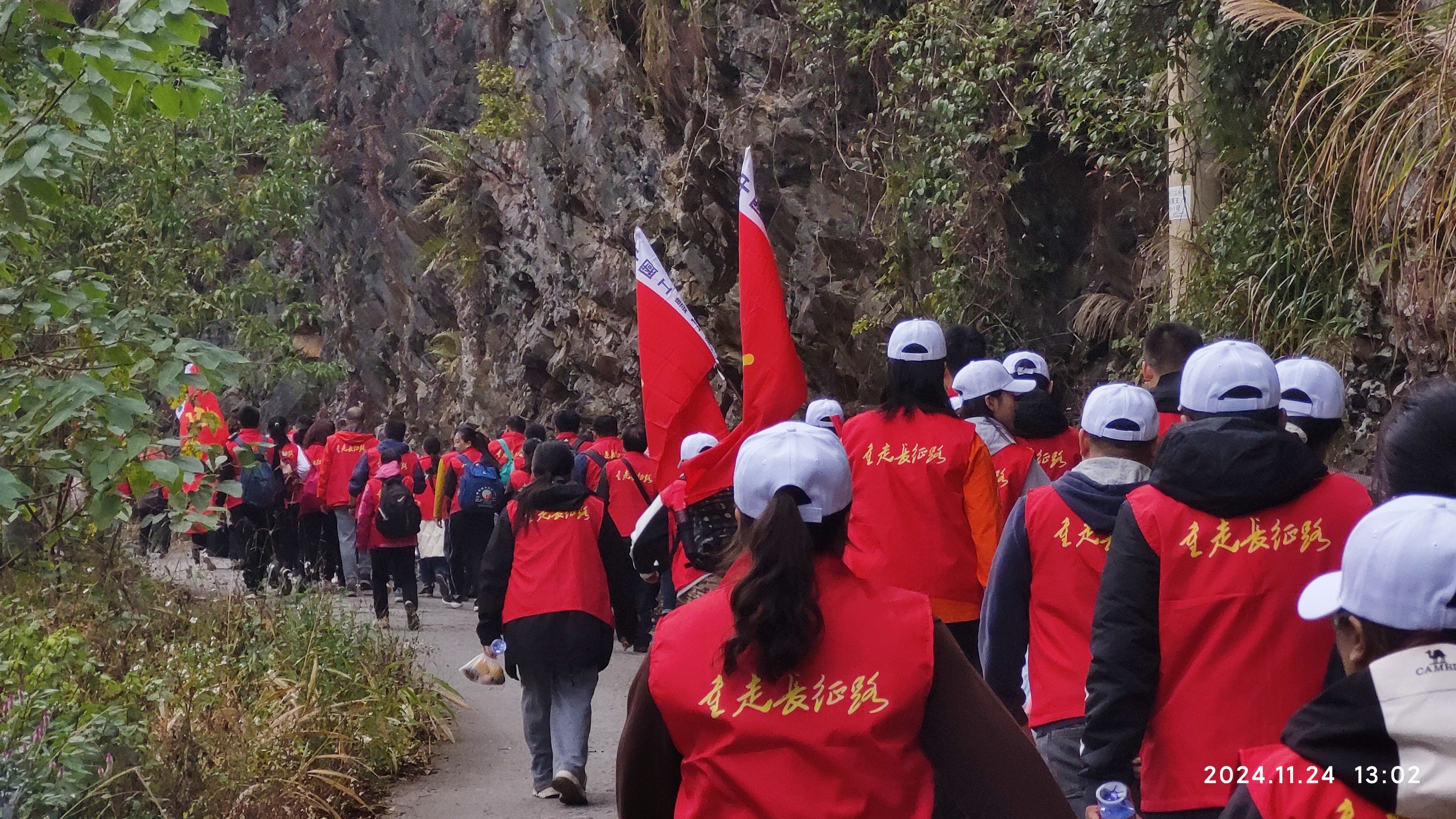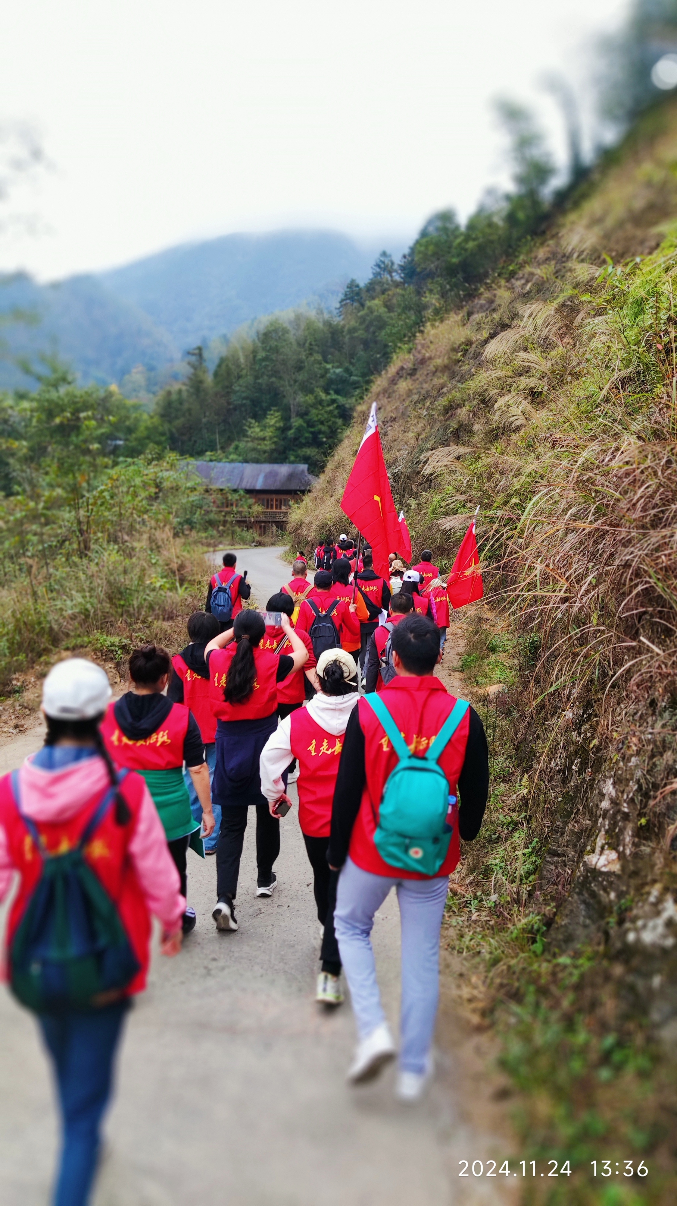 昨天 11月24日,党员和群众200余人,参加了重走长征路——灵川段。从灵川九屋东源村,经过簸箕塘、新寨,到才喜界红军烈士墓10.5公里。沿着红军的足迹,感受红军精神,缅怀革命先烈,见证红色瑶寨的新变化。