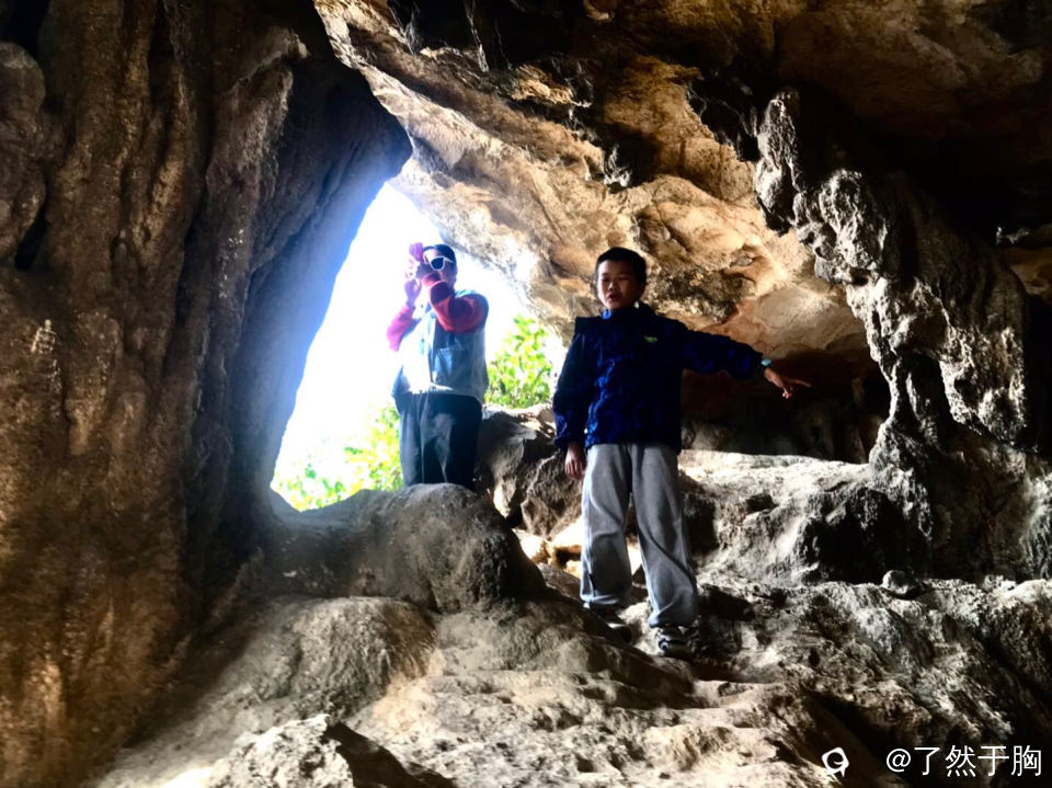 因外孙年纪小,不敢深入探察。下山后,与村民交谈,说是洞里有泉水,我们不曾探到,有点遗憾。