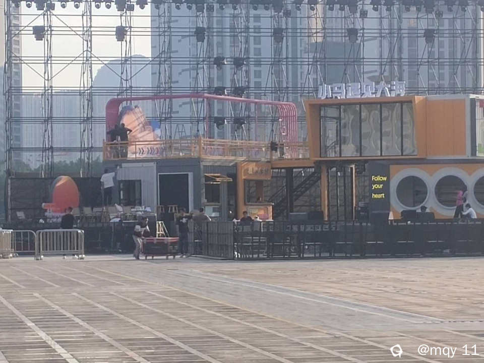 当路过桂林临桂新区市民广场,阵阵动感的音乐传到耳边,一个大型的舞台正在搭建过程中,其中标有“桂林米粉”小屋,“小马遇见大海”等字样在舞台中央。