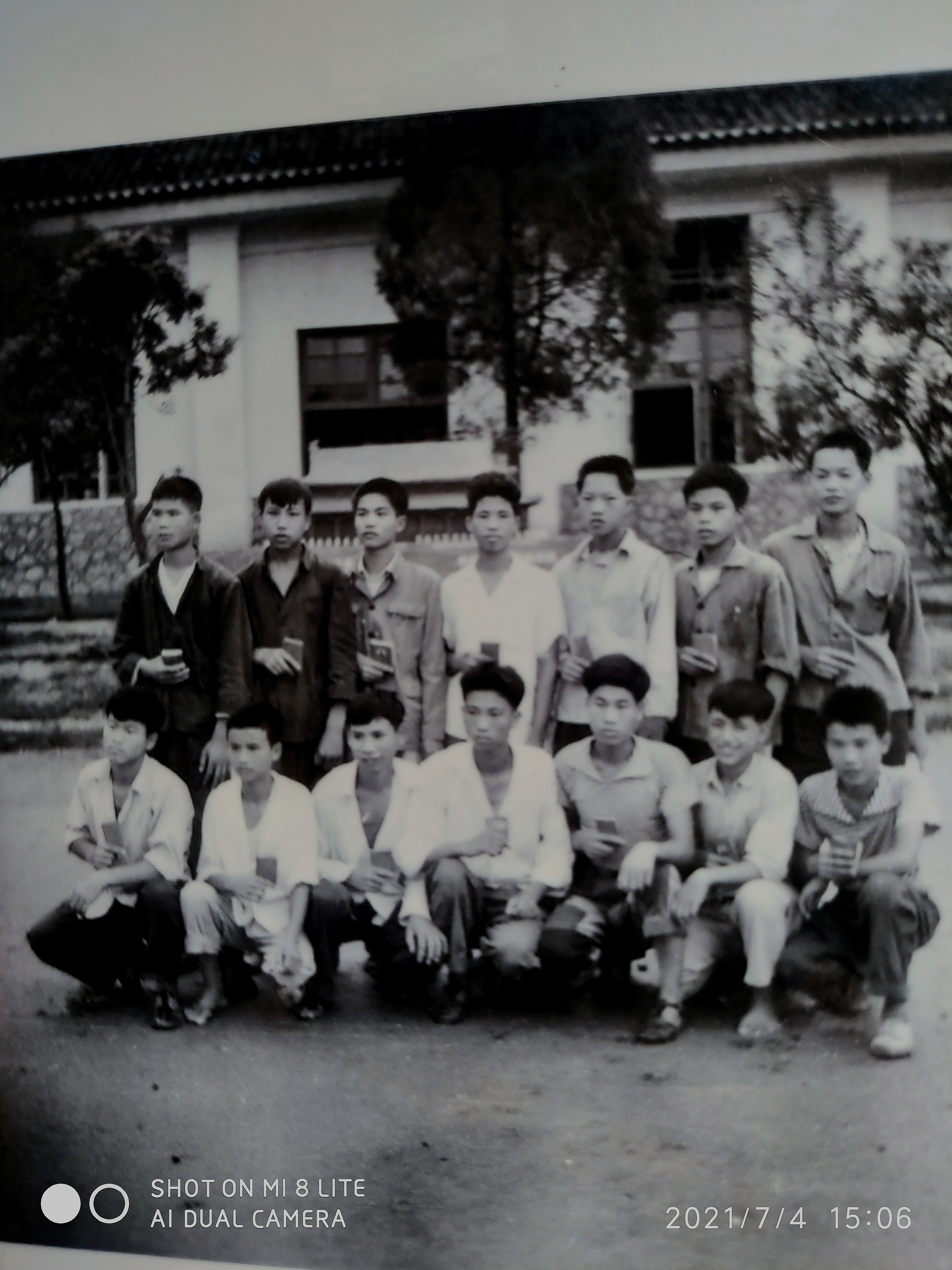 那时男女同学同班,但互不讲话,故无女同学参与留影,